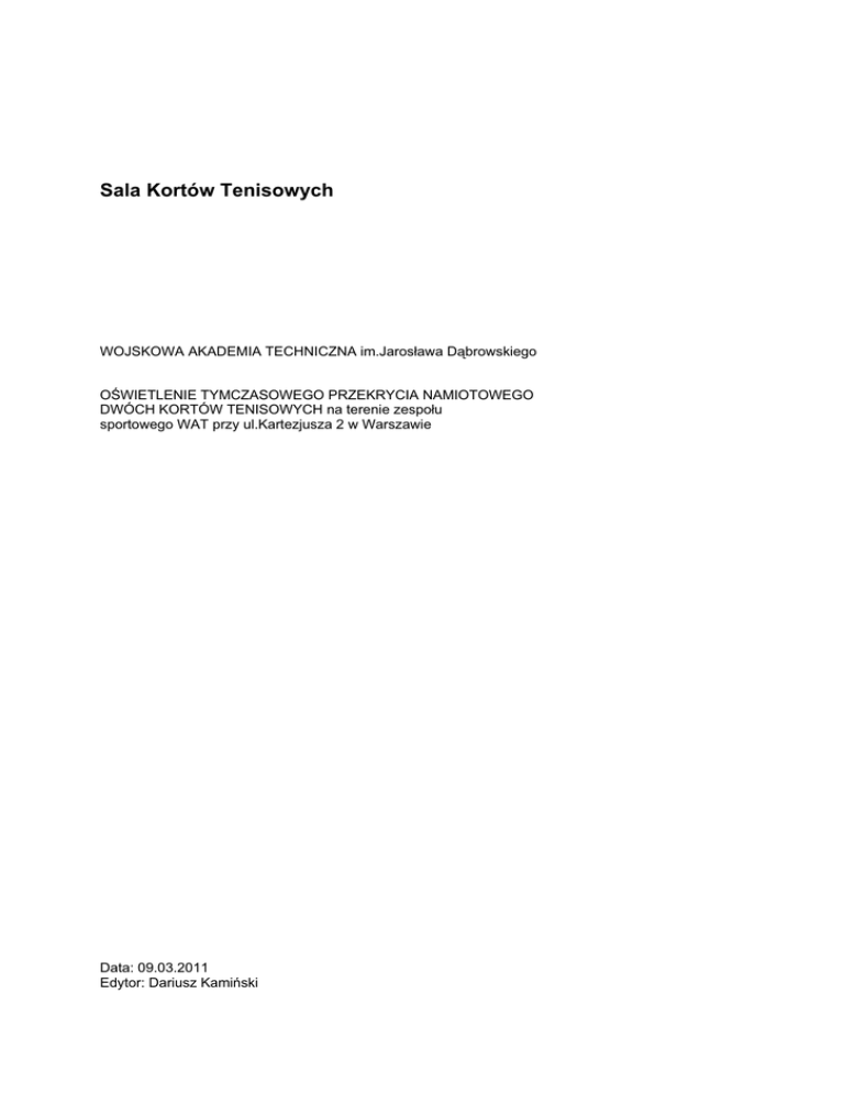 Sala Kortów Tenisowych - Wojskowa Akademia Techniczna
