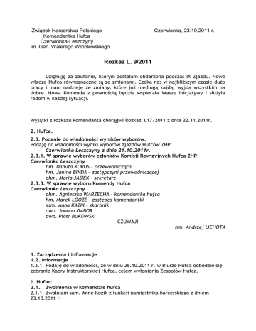 Rozkaz L9.2011 - Hufiec ZHP Czerwionka