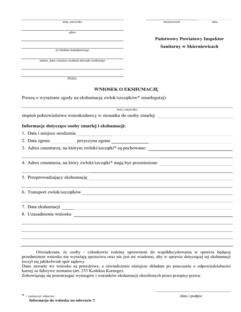 wniosek o wydanie zgody na ekshumację zwłok lub szczątków.…