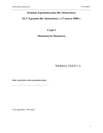 XLV Egzamin dla Aktuariuszy z 17 marca 2008 r.