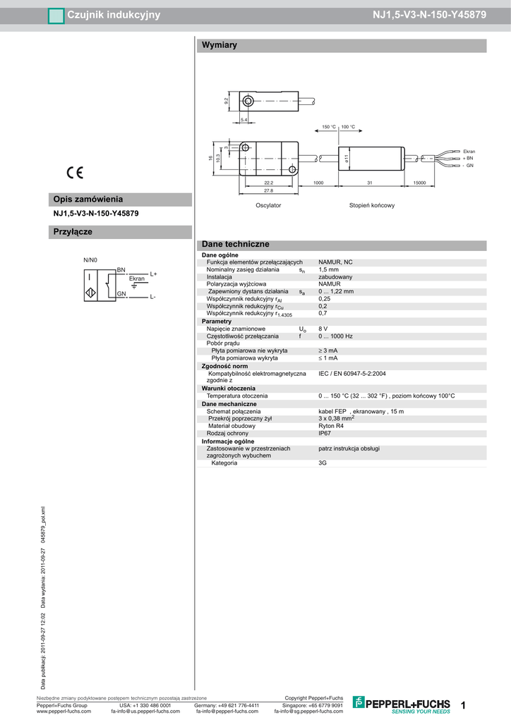 1 Czujnik indukcyjny NJ1,5-V3-N-150-Y45879