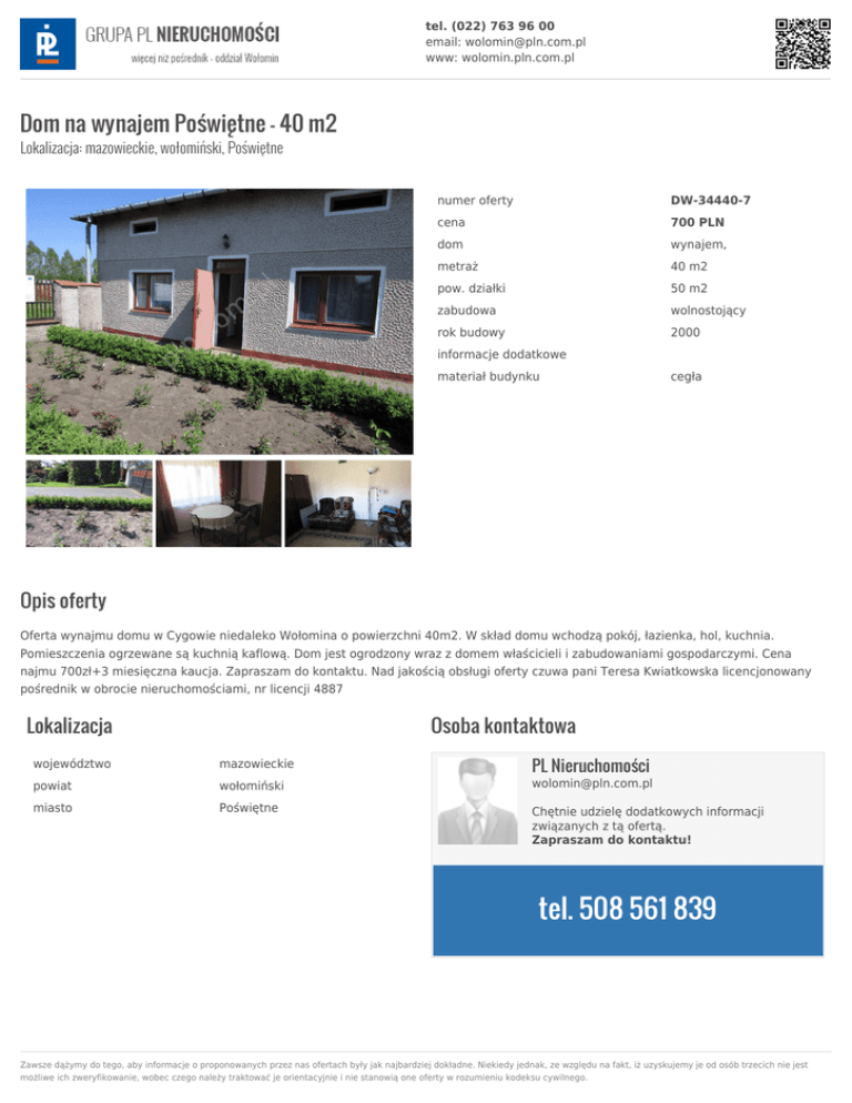 Dom na wynajem Poświętne 40m2 - ogłoszenie DW-34440-7