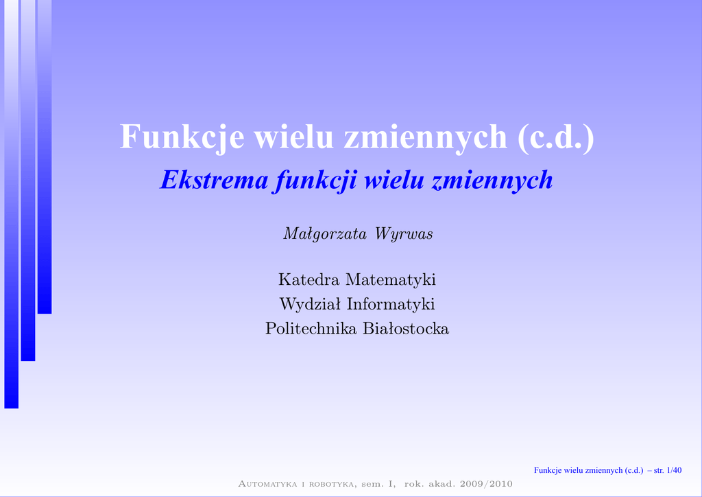 Funkcje wielu zmiennych (cd) - Katedra Matematyki, Politechnika