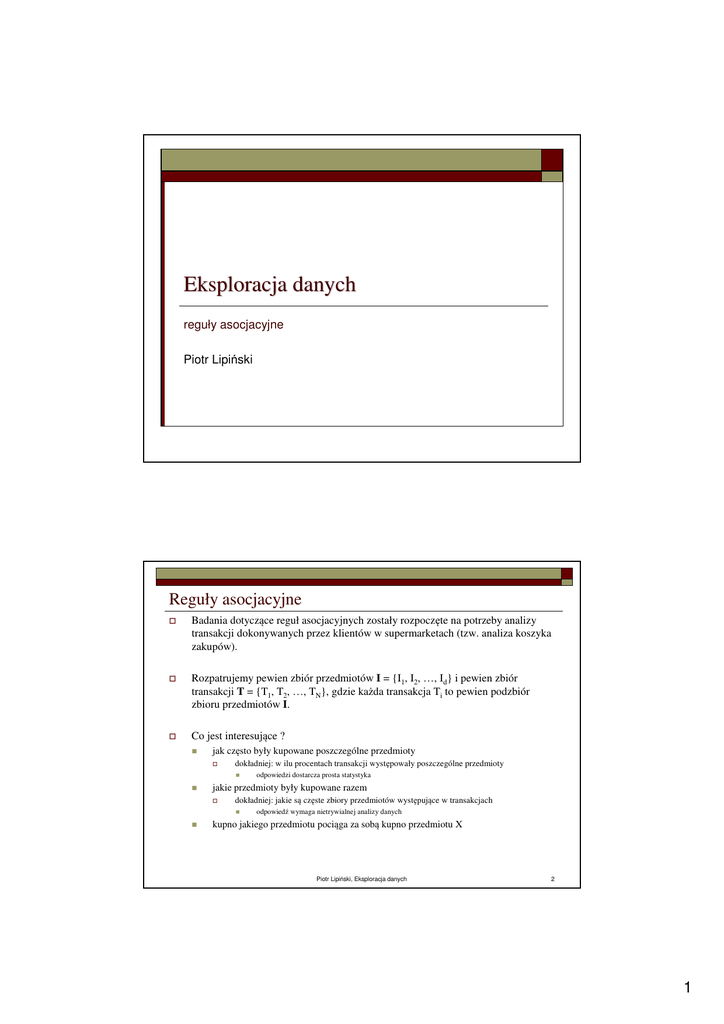 internetowym (przedmiot = strona portalu, transakcja = ciąg odwiedzonych stron