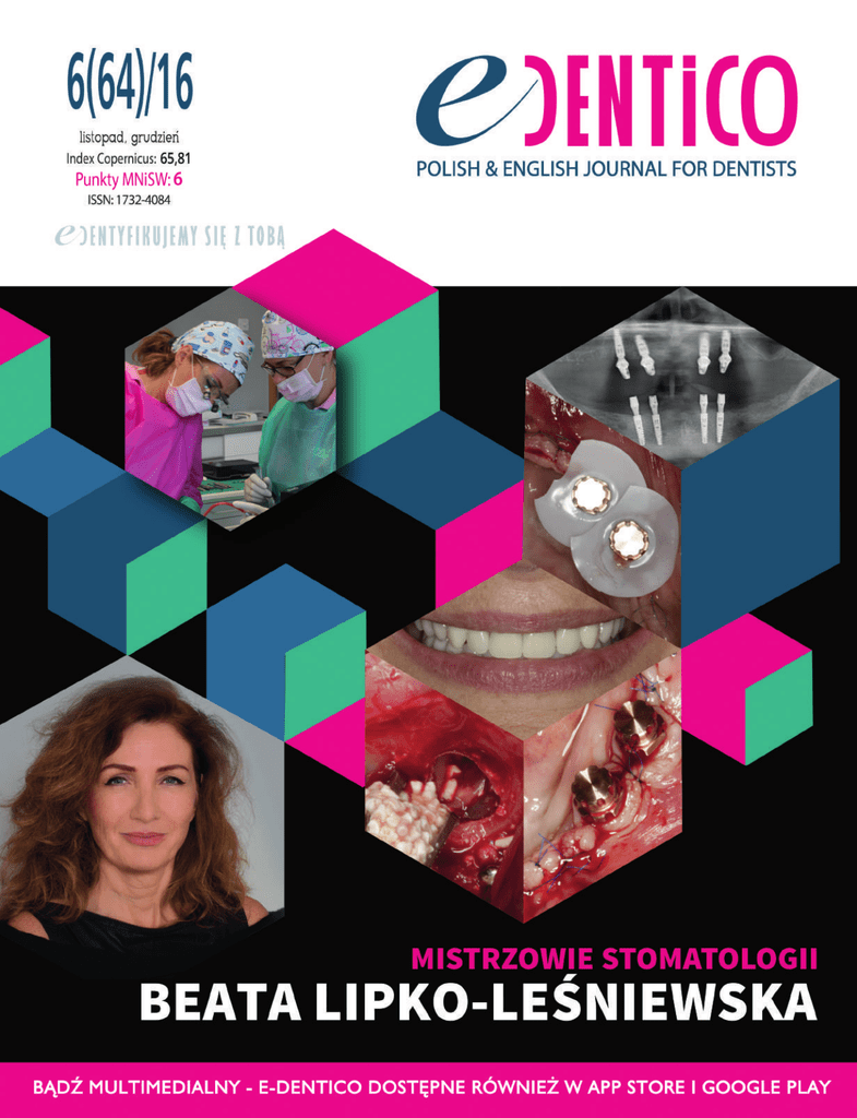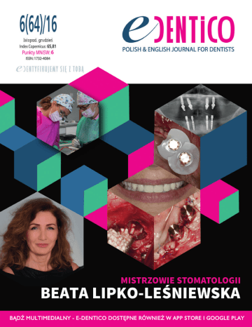 Drodzy Państwo, nadszedł już koniec roku i chwila na refleksję i podsumowania. Dla Bestom DENTOnet.pl Sp. z o.o. ul. Wigury 15a, 90-302 Łódź tel.: (42) 637 02 77 www.edentico.pl, [email protected] każdego z nas był to inny czas, ale z pewnością czas „fałszywych informacji”. Słownik oksfordzki jako słowo roku 2016 uznał post-truth Redaktor naczelny Editor-in-Chief dr n. med. Tomasz Maria Kercz (postprawda) – termin ukuty, by [email protected] opisać tę nową rzeczywistość: zalew dezinformacji, fałszywych fak- Redaktor prowadzący Executive Editor mgr Tomasz Hankiewicz tów i uchodzących płazem oczywistych kłamstw. [email protected] Redaktorzy tematyczni Feature Editors dr hab n. med. Jan Pietruski (protetyka), dr n. med. Aneta Grochowina (radiologia), dr n. med. Paweł Niewada (periodontologia), dr n. med. Aleksander Przygoński (chirurgia), Redaktor graficzny, fotoedytor, DTP Graphic designer, photo editor, DTP mgr Krzysztof Dybalski [email protected] Przez ostatni rok już do tego przywykliśmy na naszym podwórku, w Zjednoczonym Królestwie półprawdy pomogły orędownikom „wybicia się na niepodległość” uruchomić procedury Brexitu, a tu nagle prezydentem USA zostaje Donald Trump, któremu wygrać wybory prawdopodobnie pomogły fałszywe informacje. Przez miesiące składały się one na codzienną porcję wiadomości serwowanych na kontach milionów amerykańskich wyborców w mediach społecznościowych. O tym, jaka jest skala problemu, świadczy analiza publikowanych na Facebooku wiadomości, przeprowadzona przez portal Buzzfeed. Wynika z niej, że w ostatnich Redaktor statystyczny Statistical editor mgr Piotr Łukaszewicz miesiącach kampanii wyborczej w USA liczba wyświetleń, komentarzy i udostępnień najbardziej popularnych fałszywych informacji – w zdecydowanej większości sprzy- Redaktorzy językowi Language editors jających Trumpowi – przewyższyła wynik wiadomości publikowanych w 19 najpo- język polski – mgr Agnieszka Goszczyńska język angielski – Jonathan E. Lilly czytniejszych tradycyjnych mediach. Największy „hit” kampanii – artykuł o poparciu Korekta Editor’s revision Tomasz Hankiewicz Jak widać, w polityce prawda nie ma większego znaczenia, by przypomnieć słynny Marketing i reklama Marketing and advertisement tel.: (42) 637 02 77, 665 37 00 66 Ariel Jarosz, [email protected] Dorota Percha, [email protected] Prenumerata Subscription [email protected] Dział sprzedaży Sales department tel.: (42) 676 28 25 numery archiwalne, tel.: 601 55 78 79 papieża Franciszka dla Trumpa, był udostępniany prawie milion razy. cytat o trzech prawdach nieodżałowanego ks. Józefa Tischnera. Na szczęście inaczej (jeszcze) jest w nauce i medycynie. W „e-Dentico” publikujemy prawdę i tylko prawdę. Jeśli chodzi o dział mistrzowski w naszym czasopiśmie, podobnie jak w poprzednim wydaniu pozostajemy w Wielkopolsce. Tym razem mają Państwo okazję przyjrzeć się dokonaniom Pani Doktor Beaty Lipko-Leśniewskiej. Autorka prezentuje procedury związane z rekonstrukcją zębów i wyrostka zębodołowego w żuchwie mostem cyrkonowym opartym na sześciu implantach, opisuje regenerację kości w procedurze podniesienia dna zatok szczękowych oraz przedstawia wyniki dziewięcioletnich obserwacji skuteczności systemu opartego na czterech implantach. INTERN AT I O NA L Journal M a ster Lis t Pismo indeksowane w Index Copernicus: 65,81 pkt. Punktacja MNiSW: 6 pkt. Radosnych Świąt Bożego Narodzenia i ...do usłyszenia za rok Nakład 6500 egz. Wersja pierwotna – drukowana Wszystkie wymienione produkty i nazwy są używane wyłącznie w celach identyfikacyjnych i mogą być zastrzeżonymi znakami towarowymi odpowiednich właścicieli. Redakcja nie zwraca materiałów niezamówionych oraz zastrzega sobie prawo do adjustacji, doboru tytułów i skracania nadsyłanych materiałów. Redakcja nie ponosi odpowiedzialności za treść reklam. 2 Dwumiesięcznik Stomatologa Praktyka Polish & English Journal for Dentists Codziennie RZETELNIE Z PASJĄ I ZĘBEM PRAKTYKA 86 SKUTECZNOŚĆ TECHNIK TUNELOWYCH W LECZENIU MNOGICH RECESJI DZIĄSŁOWYCH. PRZEGLĄD PIŚMIENNICTWA dr n. med. Anna Skurska dr n. med. Ewa Dolińska lek. dent. Łukasz Podlewski Maria Pietruska dr hab. n. med. Jan Pietruski 94 COMPLICATIONS AFTER SURGICAL TREATMENT OF MANDIBULAR PROGNATHISM MISTRZOWIE STOMATOLOGII BEATA LIPKOLEŚNIEWSKA 8 RETROSPEKTYWNE BADANIE, OCENA SKUTECZNOŚCI I ZASTOSOWANIA SYSTEMU OPARTEGO NA CZTERECH IMPLANTACH W LATACH 2007–2016 dr n. med. Katarzyna Bogusiak prof. dr hab. n. med. Piotr Arkuszewski dr n. med. Aneta Neskoromna-Jędrzejczak 104 RETROSPECTIVE STUDY OF EFFICIENCY AND APPLICATION OF THE SYSTEM BASED ON FOUR IMPLANTS IN THE YEARS 2007–2016 dr n. med. Agnieszka Sulka lek. dent. Szymon Chojnowski lek. dent. Michał Warmuz BONE REGENERATION DURING SINUS LIFT PROCEDURE – CASE STUDY ZĘBODOŁOWEGO W ŻUCHWIE MOSTEM CYRKONOWYM OPARTYM NA SZEŚCIU IMPLANTACH MANDIBULAR TEETH AND ALVEOLAR RIDGE RECONSTRUCTION USING A ZIRCONIA BRIDGE SUPPORTED ON SIX IMPLANTS 6 Dwumiesięcznik Stomatologa Praktyka Polish & English Journal for Dentists OCENA SKUTECZNOŚCI SPROWADZANIA DO ŁUKU ZATRZYMANYCH KŁÓW PODCZAS SKOJARZONEJ TERAPII CHIRURGICZNO-ORTODONTYCZNEJ EVALUATION OF THE EFFECTIVENESS OF BRINGING IMPACTED CANINE TEETH TO THE ARCH DURING COMBINED SURGICAL AND ORTHODONTIC THERAPY REGENERACJA KOŚCI W PROCEDURZE 38 PODNIESIENIA DNA ZATOK SZCZĘKOWYCH – OPIS PRZYPADKU 62 REKONSTRUKCJA ZĘBÓW I WYROSTKA POWIKŁANIA PO CHIRURGICZNYM LECZENIU PROGNATYZMU ŻUCHWY 114 PACJENT ONKOLOGICZNY W GABINECIE STOMATOLOGICZNYM CANCER PATIENT IN A DENTAL OFFICE Natalia Kowalczyk Bartosz Bielecki-Kowalski dr n. med. Anna Dudko SPIS TREŚCI 6 (64) / 2016 EDUKACJA 126 Ogólnopolski Program Edukacyjny Repetitio est… 6/16 PERYSKOP 136 Teorie motywowania pracowników a natura ludzi Mariusz Oboda 132 Szkoleniowo-wystawiennicze imprezy stomatologiczne na 