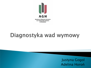 Justyna Gogol Adelina Horoń Nie jest jednorazowa, kształtuje się przez wielokrotny kontakt z badanym. Cele: • Potwierdzenie/wykluczenie zjawisk logopedycznych (zaburzeń) • Przewidywanie ewentualnych tendencji rozwojowych Dziedziny otolaryngologii. Zajmuje się zaburzeniami i schorzeniami głosu, mowy, języka oraz schorzeniami narządu słuchu, które zakłócają prawidłowy rozwój mowy (szczególnie u dzieci). Laryngologia jest dziedziną otolaryngologii, w której wykonuje się zabiegi inwazyjne na głowie i szyi. Niedosłuch Głuchota Chrypka Bezgłos (afonia) Szumy uszne Zaburzenia połykania Zaburzenia równowagi Zawroty głowy Dysleksja Autyzm Mutyzm (niemota) Logofobia Jąkanie Nowotwory krtani, gardła, szyi, nosa Praksja (z gr. - czynność, działanie) - termin określający zdolność wykonywania złożonych ruchów celowych. Praksja mowy – zdolność prawidłowego ułożenia narządów mowy (krtań, język, wargi). Próby sprawności języka: - wysuwanie i chowanie języka, opuszczanie języka na brodę i unoszenie go w kierunku nosa, kierowanie języka w stronę kącików ust, uniesienie języka do podniebienia twardego i przesunięcie go w kierunku podniebienia miękkiego, szerokie i wąskie ułożenie języka (język grot i łopata), podnoszenie brzegów języka, uniesienie brzegów języka i uformowanie go w kształt łyżeczki, oblizanie warg przy otwartych ustach, oblizanie wewnętrznej i zewnętrznej powierzchni zębów górnych i dolnych, kląskanie i mlaskanie językiem (naśladowanie odruchu ssania płaskiego cukierka), wypychanie policzków językiem, ostrzenie czubka języka o górne zęby. Próby sprawności warg: - - mocne zaciśnięcie warg, zakrywanie wargi górnej dolną i odwrotnie, przesunięcie zamkniętych warg w górę, w dół i na boki, ściąganie warg w tzw. ryjek i rozciąganie ich w uśmiechu, przemieszczanie powietrza w obrębie jamy ustnej (przy zamkniętych ustach), gwizdanie, wibrowanie warg, cmokanie, parskanie. Inne: - ruchomość żuchwy (przesuwaniejej w płaszczyznach poziomej i pionowej), - funkcjonowanie podniebienia miękkiego i pierścienia zwierającego gardła (chrząkanie, picie przez rurkę, ziewanie z wymawianiem „a”, gwizdanie, zatrzymywanie powietrza w „balonik”) - - - - wielkość i grubość języka oraz ewentualne blizny, długość i plastyczność wędzidełka podjęzykowego (czy język nie jest przyrośnięty), wielkość i przerost migdałków podniebiennych i gardłowego. deformacje podniebienia twardego, - zgryz i uzębienie, - jama nosowa (drożność), - pracę mięśni wewnętrznych krtani (obsługa wiązadeł głosowych) Zdolność czucia ułożenia narządów mowy (napięcia mięśniowego) właściwego poszczególnym głoskom. Wykształca się znacznie później niż zdolność słuchowego różnicowania głosek między sobą. Sprawdza się umiejętność powtórzenia trudnych artykulacyjnie sylab i wyrazów oraz nazwania pokazanych obrazków. „Stół z powyłamywanymi nogami” „Ząb zupa zębowa, dąb zupa dębowa” „Król Karol kupił królowej Karolinie korale koloru koralowego” Akcent – stały w języku polskim (na przedostatnią sylabę). Intonacja (melodia) - zmiany w wysokości tonu (częstości drgań wiązadeł głosowych). O przebiegu intonacji informują nas znaki interpunkcyjne. Rytm - intensywność akcentowania i czas powtarzania sylaby akcentowanej. Badana na podstawie próbki mowy spontanicznej. Płynność mówienia - swobodne, utrzymywane w odpowiednim tempie i rytmie przechodzeniu od jednego elementu wypowiedzi do następnego. Badana na podstawie występowania: powtarzania sylab, wyrazów, głosek, występowania pauz, embolofazji - dźwięk pojedynczy lub przedłużony rozpoczynający wypowiedź lub w jej trakcie, niemożności rozpoczęcia wypowiedzi. Przy prawidłowym połykaniu czubek języka opiera się o wałek dziąsłowy. Tzw. infantylne połykanie powoduje deformacje zębowo-zgryzowe przyczyniające się do zaburzeń artykulacji. Język spoczywa płasko na dnie jamy ustnej lub wsuwa się między zęby. W celu zbadania funkcji połykowej prosi się pacjenta o przełknięcie podanego płynu i jednocześnie obserwuje się położenie języka i ruchy warg. Przy nieprawidłowym przełykaniu dziecko mocno zaciska wargi. Prawidłowe fizjologiczne oddychanie odbywa przez nos. Oddech powinien być równy, rytmiczny, harmonijny. Przy mówieniu wdycha się powietrze nosem i ustami, a wydycha ustami. W spoczynku często obserwuje się patologiczne oddychanie przez usta, które może być przyczyną np. infekcji, zaburzeń zgryzowych, hipotonii warg, dysfunkcji połykowej. Na podstawie obserwacji mowy spontanicznej. •czy w toku mowy występuje nastawienie miękkie (struny zbliżają się do siebie równocześnie i w sposób swobodny drgają), •czy głos jest niski/wysoki, ochrypły/czysty, •szeroko otwiera usta, •napięcie języka, podniebienia, warg i szyi. Można ją badać w dwóch aspektach: werbalnym i niewerbalnym. Z punktu widzenia diagnozy logopedycznej istotne jest badanie pamięci słuchowej werbalnej, czyli pamięci wzorców słuchowych wyrazów (ich długości, kolejności sylab, liczby głosek w sylabie). Zakres pamięci świeżej oznacza, że człowiek, który nie ma problemu z pamięcią słuchową, po jednokrotnym podaniu wzorca powinien zapamiętać około 7 wyrazów. Określenie umiejętności różnicowania i identyfikacji głosek oraz dokonywania ich analizy i syntezy. Różnicowanie słuchowe głosek o zbliżonych cechach artykulacyjnych i akustycznych (w izolacji, sylabach, wyrazach). Na przykład czy słyszy różnicę pomiędzy głoskami ”r” i „I” . Syntezę słuchową słów oznacza połączenie danych elementów w jeden wyraz mający formę i znaczenie. pomoce językowe (logopedyczne zbiory wyrazów i zdań, opowiadania, teksty piosenek, wiersze, zagadki itd.); pomoce obrazkowe gry językowe, rentgenogramy i labiogramy (animacje
