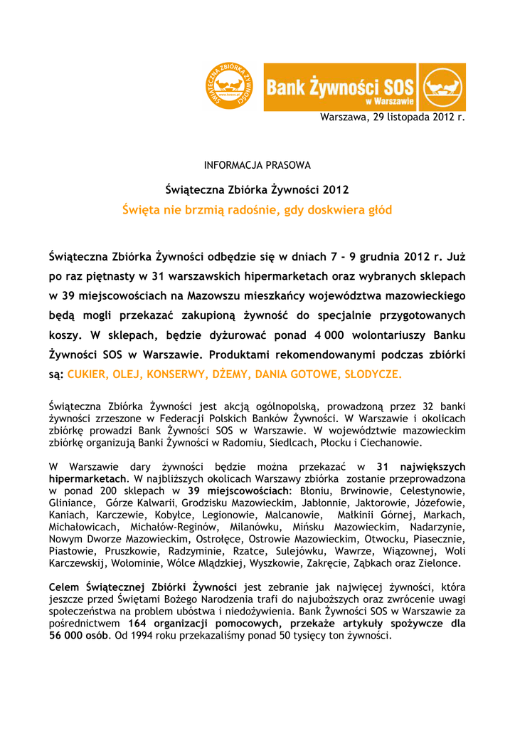 Informacja Prasowa Świąteczna Zbiórka Żywności 2012 _1