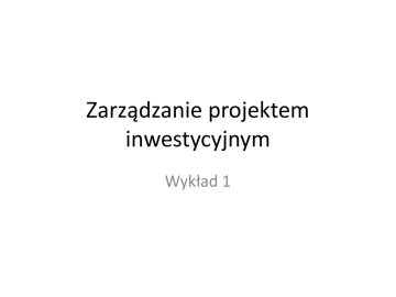 Zarządzanie projektem inwestycyjnym Wykład 1 Referaty • rzeczywisty projekt inwestycji + finansowanie • symulacja projektu inwestycji + finansowanie Definicja inwestycji wg P. Pabianiaka Inwestycja =przedsięwzięcie inwestycyjne=projekt inwestycyjny „dokonywanie przez podmioty gospodarcze nakładów majątkowych” (s. 12) „cały proces związany z tym działaniem, a mianowicie całość spraw związanych z wdrożeniem inwestycji i później z jej eksploatacją (…) związaną, (….) z osiąganiem oczekiwanych rezultatów” (s. 12). Inwestycje – rodzaj aktywów Rzeczowe Finansowe Niematerialne Grunty Papiery wartościowe Badania i rozwój Budynki i budowle Pożyczki i lokaty Prawa autorskie, licencje i patenty Maszyny i urządzenia oraz środki transportu Jednostki w funduszach powierniczych Oprogramowanie inne Instrumenty pochodne Relacje z innymi podmiotami Inne Inne Źródło: oprac. wł. na podst. Dziworska 1993 Rodzaje inwestycji wg A. Manikowskiego i Z.Tarapaty Kryterium Rodzaj Charakter tworzenia majątku Inwestycje zakupowe (np. zakup środków transportu) trwałego Inwestycje budowlane (np. prace budowlanomontażowe) Sposób realizacji Inwestycje zlecone Inwestycje wykonywane we własnym zakresie Sposób inwestowania Inwestycje finansowane środkami własnymi Inwestycje kredytowane Inwestycje mieszane Czas realizacji i użytkowania Krótkoterminowe (czas realizacji: do 3 miesięcy, czas użytkowania do 5 lat) Średnioterminowe (cykl realizacji: 3–12 miesięcy, czas użytkowania 5–10 lat) Długoterminowe (cykl realizacji: powyżej 12 miesięcy, czas użytkowania: powyżej 10 lat) Manikowski, Tarapata 2001, s. 17-18 Rodzaje inwestycji • inwestycje produkcyjne –nakłady ponoszone na odtworzenie i przyrost środków trwałych służących do wytwarzania dóbr i usług materialnych (nakłady ponoszone na przemysł i budownictwo, rolnictwo, transport, łączność i obrót towarowy) • inwestycje nieprodukcyjne – nakłady ponoszone na działy nieprodukcyjne w gospodarce, czyli (na budownictwo mieszkaniowe i komunalne, urządzenia socjalne i kulturalne, na naukę i oświatę etc.); powinny być zyskowne, ale także obejmują sferę konsumpcji społecznej, (szkoły, szpitale etc.), dlatego powinien być prowadzony także rachunek tzw. korzyści społecznych • inwestycje infrastrukturalne –nakłady inwestycyjne na urządzenia niezbędne do zapewnienia prawidłowego funkcjonowania gospodarki narodowej (np. urządzenia do zaopatrzenia ludności w wodę etc.) Kurek 1998, s. 10-11 Rodzaje inwestycji według stopnia dywersyfikacji • Inwestycje indywidualne (np. w pojedynczy rodzaj akcji) • Inwestycje portfelowe (zdywersyfikowane) • Inwestycje programowe (zdywersyfikowane według określonej strategii i wspólnego celu) Inwestycje rzeczowe • przyrost lub wymiana materialnych składników majątku trwałego: – inwestycje nowe, – rozbudowa, – modernizacje, – inwestycje odtworzeniowe. Manikowski, Tarapata 2001, s. 17-18 Rodzaje inwestycji majątkowych • inwestycje nowe: rozwojowe, których rezultatem wprowadzenia ma być zwiększenie zdolności wytwórczych jednostki gospodarczej, poprawa jakości wytwarzanych produktów czy udzielanych usług, czyli dodanie procesowi wytwórczemu jakiejś dodatkowej wartości (w ujęciu ilościowym lub jakościowym), • inwestycje odtworzeniowe (restytucyjne, reinwestycje), gdy następuje zastępowanie zużytych lub przestarzałych urządzeń nowymi i powoduje to utrzymanie produkcji na tym samym poziomie • inwestycje modernizacyjne: celem jest poprawa efektywności i konkurencyjności • inwestycje innowacyjne: służą modyfikacji (podniesienia konkurencyjności) wytwarzanych dotychczas wyrobów P. Pabianiak, 2015, s. 13 Fazy inwestowania – typy anliz 1. • • • • 2. • • 3. Faza przedinwestycyjna: badania Analiza ex-ante analizy decyzja inwestycyjna zdobywanie środków Realizacja inwestycji: wdrożenie rozpoczęcie Dochodzenie do zakładanych zdolności produkcyjnych (lub innych oczekiwanych efektów) 4. Eeksploatacja inwestycji (osiąganie efektów i korzystanie z nich) P. Pabianiak, s. 12 Analiza ex-post Nakłady inwestycyjne według faz inwestowania „Nakłady inwestycyjne to środki ponoszone w związku z realizacją inwestycji, (…) przeznaczone na nabycie, wytworzenie czy modernizację dóbr inwestycyjnych” • Przykłady: 1. W fazie przedinwestycyjnej: nakłady na wszelkie prace przygotowawcze: np. na badania rynkowe, techniczne etc. 2. W fazie realizacji inwestycji – nakłady na zakup czy wytworzenie środków trwałych tj. np. zakup gruntów i ich przygotowanie, budowa budynków, zakup technologii etc. Często związane z tzw. sunk cost Czum jest rachunek efektywności inwestycji? • Według H. Kryńskiego: • rachunek efektywności inwestycji obejmuje „[...] ogół obliczeń związanych z porównaniem efektów uzyskanych w okresie eksploatacji ze zrealizowanej inwestycji z nakładami niezbędnymi do ich osiągnięcia” Felis 2005, s. 23 Okres analizy: • Okres finansowania (np. do spłacenia kredytu) • Okres amortyzacji środka trwałego • Okres trwania projektu zamkniętego (lub wspólna wielokrotność projektów Konieczność ustalenia porównywanych wartości terminalnej • Okres nieskończony – zasada kontynuacji działalności Ocena ryzyka projektów inwestycyjnych • • • • rodzaje ryzyka projektu wpływ poszczególnych rodzajów ryzyka skutki stopień narażenia na ryzyko Przypomnienie podstawowych metod oceny projektów inwestycyjnych • • • • • • • Payback Zdyskontowany payback DCF NPV IRR, MIRR Wskaźnik zyskowności PI nowoczesne: np. metoda opcji rzeczywistych, efektywność inwestycyjna Literatura • • • • • • • • • Dziworska K. (1993) Inwestycje przedsiębiorstw, Uniwersytet Gdański, Gdańsk. Felis P. (2005). Metody i procedury oceny efektywności inwestycji rzeczowych przedsiębiorstw. Wyd. Wyższej Szkoły Ekonomi