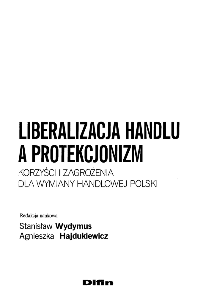 LIBERALIZflCJA HANDLU A PROTEKCJONIZM KORZYSCII