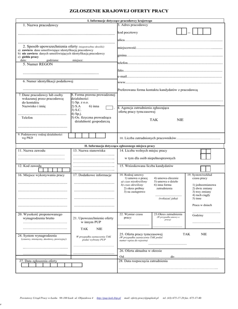 zgłoszenie oferty pracy