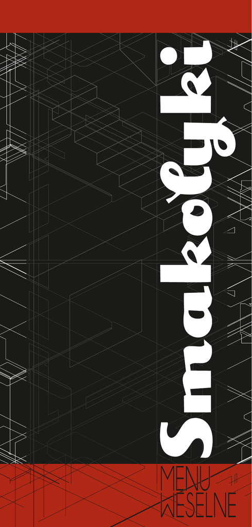 DANIE GŁÓWNE PODAWANE : · Delikatna galantyna z sandacza z kaparami z aksamitnym sosem cytrynowym · Rosół z makaronem i cielêcymi pulpetami · Roladki schabowe na grzybowym ragout z domowymi kopytkami i duszoną czerwoną kapustą · Chrupiący koszyczek z lodami i owocami WYBÓR PRZEKĄSEK PO DANIU GŁÓWNYM NA STOLE LUB BUFECIE : · Kompozycja z łososia wędzonego z kremem kawiorowym · Półmisek wybornych śledzi na kilka sposobów · Kolorowa galantyna z drobiu z sosem campari · Pieczony schab z morelami w delikatnej glazurze · Medaliony z polędwiczek z musem brokułowym · Pasztet z dziczyzny zapiekany w boczku · Deska wybornych serów z winogronami i orzechami · Bukiet sałat z kawałkami tuńczyka i świeżymi warzywami · Sałatka grecka z owczym serem · Sałatka penne z brokułami i migdałami · Wybór świeżego pieczywa · Masło w trzech smakach · Pikle i świeże warzywa GORĄCA KOLACJA I : · Filety z kurczaka w sosie gorgonzola serwowane na warzywnym ryżu GORĄCA KOLACJA II : · Wieprzowina duszona z kurkami w sosie śmietanowym BUFET SŁODKI : · Wykwintne ciastka orzechowe · Sernik wiedeński z czekoladą · Świeże owoce sezonowe Z E S TAW I - K L A S Y C Z N Y · Zestaw sosów do ryb i mięs 150 zł /os. DANIE GŁÓWNE PODAWANE : · Wyborny pasztet pieczony w boczku podany z sosem tatarskim · Aromatyczny rosół z makaronem · Tradycyjna rolada śląska, schab pieczony ze śliwkami, udko z kurczaka pachnące rozmarynem · Kluski białe i ciemne, ziemniaki gotowane z koperkiem · Duszona czerwona kapusta, surówka z białej kapusty, surówka z marchwi z jabłkiem WYBÓR PRZEKĄSEK PO DANIU GŁÓWNYM NA STOLE LUB BUFECIE : · Półmisek szlachetnych wędlin · Wyborne sery z winogronami i orzechami · Polędwiczki wieprzowe z musem brokułowym · Pieczony karczek w ziołach · Kolorowa galantyna z drobiu · Jajka faszerowane w różnych smakach · Śledzie w oliwie winogronowej z zielonym pieprzem · Śledzie marynowane w occie z ziołami · Kolorowe galaretki z kurczaka · Sałatka na sposób grecki · Sałatka z drobiu z winogronami · Pikle i świeże warzywa · Masła smakowe · Wybór świeżego pieczywa GORĄCA KOLACJA I : · Filety z kurczaka a z grilla z frytkami i sałatką z kapusty pekińskiej GORĄCA KOLACJA II : · Barszcz czerwony z krokietami BUFET SŁODKI : · Sernik z rodzynkami · Jabłecznik z cynamonem · Tradycyjny makowiec · Owoce sezonowe Z E S TAW I I - T R A D Y C Y J N Y · Zestaw sosów zimnych 180 zł /os. DANIE GŁÓWNE PODAWANE : · Kaczka nadziewana suszonymi owocami z żurawinowym sosem · Krem ze szparagów z ptysiowym groszkiem · Pieczone udko z kurczaka pachnące rozmarynem · Tradycyjne roladki wołowe · Marynowany schab z grilla w asyście grzybów · Kluski, ziemniaki, kapusty, bukiety jarzyn · Sorbet cytrynowy ze świeżą miętą WYBÓR PRZEKĄSEK PO DANIU GŁÓWNYM NA STOLE LUB BUFECIE : · Paleta ryb wędzonych z soczystymi warzywami · Plastry pieczonego indyka w miodowo-sezamowym sosie · Soczysta sałatka z selera, mandarynek i orzechów włoskich · Pieczony schab ze śliwkami w delikatnej glazurze · Soczyste filety z miruny w warzywnym sosie · Staropolski pasztet z dziczyzny zapiekany w boczku · Półmisek wybornych śledzi na kilka sposobów · Sałatka grecka z owczym serem · Sałatka z kurczaka i winogron · Sałatka makaronowa z tuńczykiem · Pasztet z drobiu z pistacjami · Jajka faszerowane musem szynkowym · Sosy zimne GORĄCA KOLACJA I : · Sznycel cielęcy z pomidorem i mozarellą z duszonymi warzywami po prowansalsku GORĄCA KOLACJA II : · Wykwintny żurek z jajkiem pachnący grzybami BUFET SŁODKI : · Krucha tarta jabłkowa · Rolada makowa z bakaliami · Tarta z soczysta brzoskwinią · Rolada biszkoptowa z waniliowym kremem Z E S TAW I I I - W Y K W I N T N Y · Wybór świeżego pieczywa · Masło w trzech smakach 210 zł /os. DANIE GŁÓWNE PODAWANE : · Łosoś marynowany w białym winie i koprze z kaparami · Krem brokułowy z szyjkami rakowymi i rozetą z bitej śmietany · Kacza pierś marynowana w pomarańczach prosto z pieca · Soczysta ppieczeń cielęca szpikowana czosnkiem · Rolada z trzech mięs w aromatycznym, kremowym sosie · Kluski, ziemniaki, kapusty, bukiety jarzyn i sałatki · Świeże owoce w sosie szampańskim WYBÓR PRZEKĄSEK PO DANIU GŁÓWNYM NA STOLE LUB BUFECIE : · Kompozycja ze śledzi w trzech wybornych smakach · Łosoś w warzywach julienne w winnej galaretce · Pstrąg wędzony dekorowany musem chrzanowym · Pasztet z grzybów z sosem weneckim · Marynowany schab ze śliwkami w delikatnej glazurze · Rożki obfitoœści faszerowane musem serowym · Myśliwski pasztet z dzika z żurawiną · Jajka faszerowane w różnych smakach · Deska wybornych serów z winogronami · Seler naciowy z pikantnym serem roquefort · Sałatka rubinowa z czerwoną fasolką · Tradycyjna sałatka szwajcarska z żółtym serem · Masło w trzech smakach · Zestaw sosów zimnych · Pikle GORĄCA KOLACJA I : · Rostbef z pieca z mas łem czosnkowym podany z frytkami i bukietem kolorowych sałat GORĄCA KOLACJA II : · Aromatyczny bulion drobiowy z kołdunami BUFET SŁODKI : · Szarlotka cynamonowa · Wybór kruchych babeczek · Owoce sezonowe Z E S TAW I V - E K S L U Z Y W N Y · Warzywa grillowane w oliwie czosnkowo - pietruszkowej · Wybór świeżego pieczywa 250 zł /os.