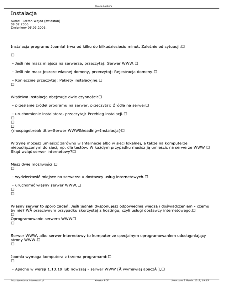 działania serwera WWW oprogramowanie z preinstalowaną joomlą. Pakiet możesz pobrać ze strony