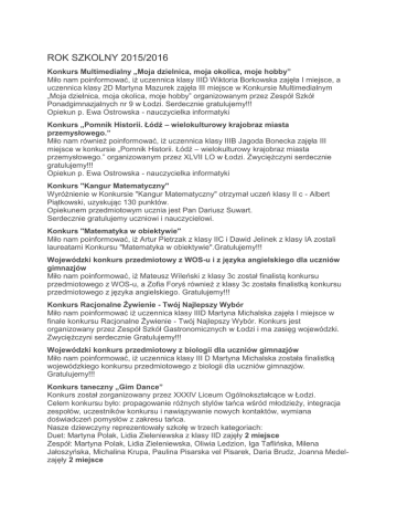 rok szkolny 2015/2016 - Gimnazjum nr 41 w Łodzi