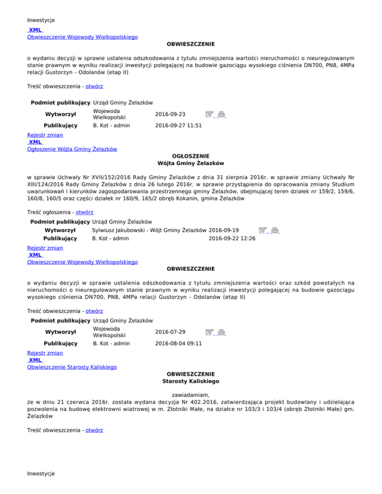 Inwestycje Inwestycje XML Obwieszczenie Wojewody