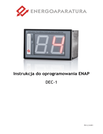 Instrukcja do oprogramowania ENAP DEC-1 PS1-2_12.2011 Do urządzenia DEC-1 dołączone jest oprogramowanie umożliwiające konfigurację urządzenia, rejestrację zdarzeń oraz wizualizację pracy urządzenia oraz poszczególnych modułów. W celu nawiązania komunikacji z urządzeniem możemy wykorzystać podstawowy kanał komunikacyjny na łączu USB służący do zmiany nastaw i konfiguracji. Kabel jaki wykorzystamy do komunikacji z urządzeniem to standardowy typ kabla USB A-B. Urządzenie wyposażone jest w łącze światłowodowe ST (opcja) umożliwiające podłączenie do systemu nadzoru po protokole IEC 870-5-103. Standardowo łącze to wykonane jest w standardzie RS232 i RS485. Łącze to można wykorzystać, jako łącze inżynierskie ustawiając na tym kanale protokół firmowy ENAP. 1. KONFIGURACJA PROGRAMU Po pierwszym uruchomieniu należy skonfigurować program, aby możliwa była komunikacja z urządzeniem. W tym celu należy wybrać z menu Opcje -> Konfiguracja lub wcisnąć jednocześnie klawisze Ctrl i K na klawiaturze. Okno konfiguracyjne zostało przedstawione na rysunku 1. Rys.1. Okno konfiguracji połączenia. Domyślnymi ustawieniami są: - komunikacja poprzez port szeregowy, - prędkość 57600 bit/s, - pierwszy port szeregowy, - brak bitu parzystości, - jeden bit stopu. W przypadku pracy z modułem VIZ-1, należy wybrać komunikację poprzez protokół TCP/IP oraz wpisać odpowiedni adres IP i port urządzenia. PS1-2_12.2011 Po uruchomieniu programu na ekranie ukazuje się główne okno programu, jak na rysunku 2. Rys. 2. Główne okno programu. 2. POŁĄCZENIE Z URZĄDZENIEM W celu połączenia z urządzeniem należy kliknąć w przycisk „Przeszukuj” (F2), a następnie „Rozpocznij przeszukiwanie”. Okno przeszukiwania w celu wykrycia urządzenia zostało przedstawione na rysunku 3. Rys. 3. Okno przeszukiwania urządzeń . 2 PS1-2_12.2011 Na liście pojawią się wszystkie odnalezione urządzenia. Połączenie następuje po wybraniu urządzenia. Jeśli znany jest adres komunikacyjny, można wpisać go ręcznie w lewym dolnym rogu okna. Po połączeniu następuje pobranie danych z urządzenia o czym użytkownik będzie na bieżąco informowany. Program gotowy jest do pracy, gdy odbierze wszystkie dane. Uaktywnione powinny zostać wtedy przyciski „Widok urządzenia”, „Konfiguracja wejść” oraz „Konfiguracja wyjść”. Nieaktywny przycisk oznacza, że program nie wykrył ani jednego modułu danego typu. Odebrane zdarzenia na bieżąco pojawiają się w głównym oknie. Możliwe jest nadanie priorytetów zdarzeniom i wyświetlenie wyłącznie zdarzeń o wybranym priorytecie. Rys. 4. Okno priorytetów . Ustawienia kolorów dla odpowiednich priorytetów, jak również liczba wyświetlanych zdarzeń znajdują się w menu Opcje->Preferencje. Rys. 5. Okno preferencji . Użytkownik ma możliwość zatrzymania odbioru zdarzeń zaznaczając odpowiednią opcję w menu Zdarzenia. Informacja o połączeniu znajduje się w lewym dolnym rogu okna oraz na pasku zadań. Jeśli użytkownik jest połączony dioda powinna zmieniać kolory. Jeśli czas oczekiwania na połączenie jest dłuższy niż 6 sekund na pasku zadań pojawi się komunikat o prawdopodobnej utracie połączenia. Oznaczenia kolorów diody sygnalizującej połączenie: - żółty – wysłano dane do urządzenia, - zielony – odebrano dane z urządzenia, - niebieski – potwierdzenie dostarczenia rozkazu, - czerwony – wewnętrzny błąd komunikacji. Dodatkowo na pasku statusu może pojawić się dioda koloru pomarańczowego, co oznacza błędne zapytanie. 3 PS1-2_12.2011 3. WIDOK URZĄDZENIA Na rysunku 6 przedstawione zostało okno widoku urządzenia. Odwzorowany został w nim aktualny stan urządzenia. Po lewej stronie widoczny jest aktualny numer zaczepu transformatora oraz wizualizacja wejść/wyjść. Po prawej stronie znajduje się sygnalizacja. Użytkownik ma możliwość kasowania oraz wykonania próby wyświetlaczy siedmiosegmentowych na panelu przednim urządzenia. Rys. 6. Okno widoku urządzenia. 4. KONFIGURACJA URZĄDZENIA Okno konfiguracyjne zostało przedstawione na rysunku 7. Nastawy Umieszczone zostały tutaj nastawy dla sygnalizacji kryterium pierwszego i drugiego oraz nastawy zaczepów skrajnych i wczesnego ostrzegania. Można ustawić liczbę dozwolonych przełączeń przełącznika zaczepów na określony czas (na minutę, na godzinę, na dzień). Jeżeli przełącznik zaczepów pracuje za często uruchomi się sygnalizacja kryterium 1 lub 2. Sygnalizacja ta może pobudzić jeden z przekaźników sygnalizacyjnych i pojawi się zdarzenie widoczne w systemie nadzoru. Urządzenie posiada dwa przekaźniki sygnalizacyjne PK1 i PK2. Rodzaj pracy tych przekaźników wybiera się programowo. Przekaźniki mogą sygnalizować jedną przyczynę podaną na liście Rys. 7. Okno konfiguracji urządzenia. 4 PS1-2_12.2011 Konfiguracja połączenia Użytkownik ma możliwość konfiguracji połączenia, zmiany prędkości transmisji, zmiany protokołu komunikacyjnego (ENAP -> IEC 870-5-103), nadania adresu urządzeniu. Urządzenie wyposażone jest w łącze światłowodowe ST (opcja) umożliwiające podłączenie do systemu nadzoru po protokole IEC 870-5103. Łącze można wykorzystać, jako łącze inżynierskie ustawiając na tym kanale protokół firmowy ENAP. Standartowo montowane jest łącze RS232 i RS485 z gniazdem DB-9. Sygnały na DB-9 wyprowadzone są zgodnie z opisem: 2- RXD, 3- TXD, 5- GND. . Rys. 7. Okno konfiguracji urządzenia 5. POZIOMY UPRAWNIEŃ W programie dostępne są cztery poziomy uprawnień użytkownika zabezpieczone hasłem, które użytkownik może zmienić wybierając: Opcje -> Hasła -> Zmiana haseł. Poziomy uprawnień użytkownika: - poziom 0 – tylko podgląd pracy urządzenia, brak jakichkolwiek możliwości sterowania; ustawiany po włączeniu programu, nie wymaga podawania hasła; - poziom 1 – podgląd pracy urządzenia z możliwością kasowania, - poziom