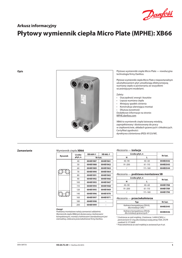 Płytowy wymiennik ciepła Micro Plate (MPHE): XB66