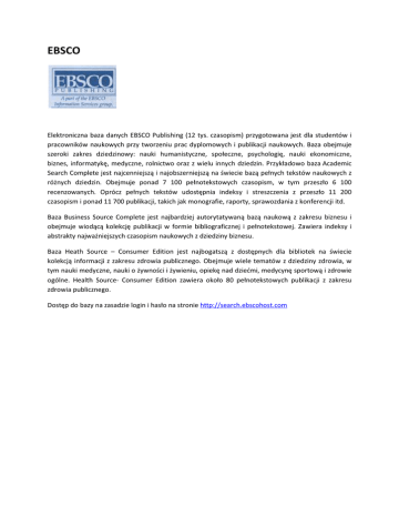 ogólne. Health Source- Consumer Edition zawiera około 80 pełnotekstowych publikacji z zakresu