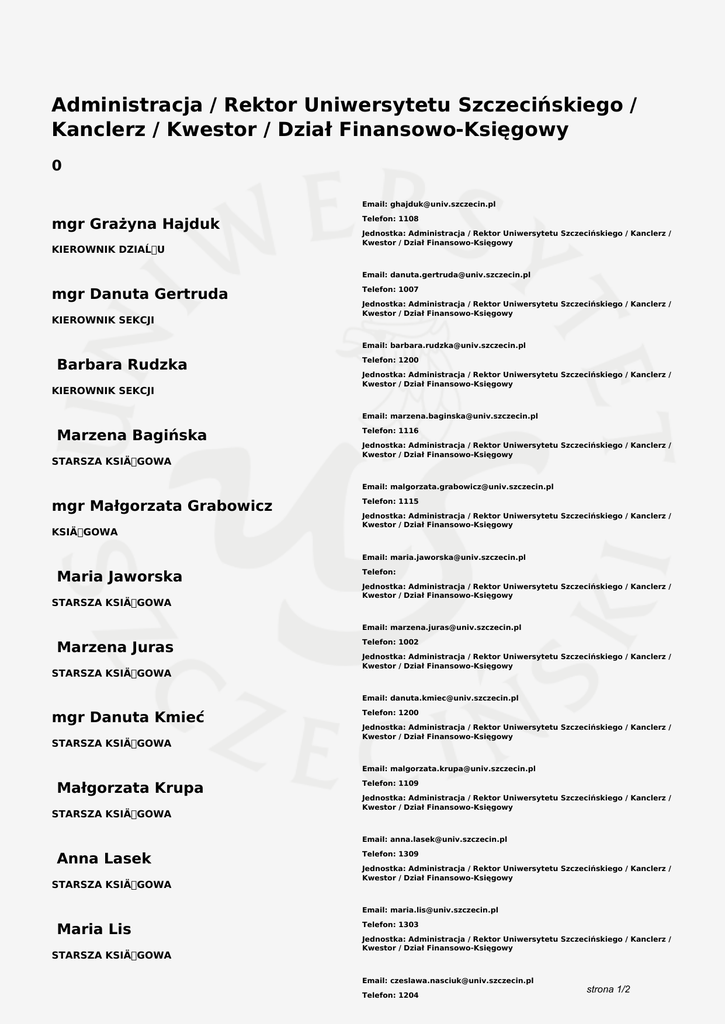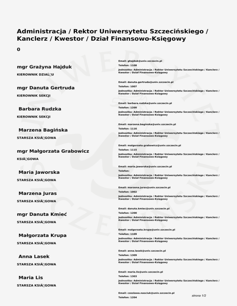 Administracja / Rektor Uniwersytetu Szczecińskiego / Kanclerz