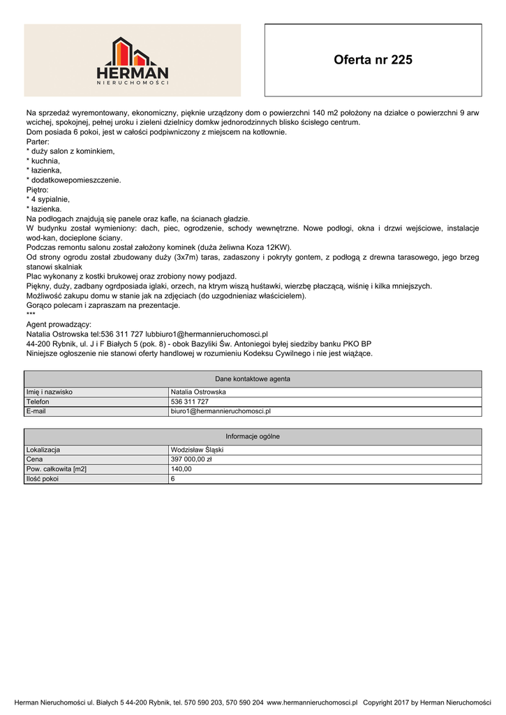 Oferta nr 225 - HERMAN Nieruchomości