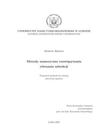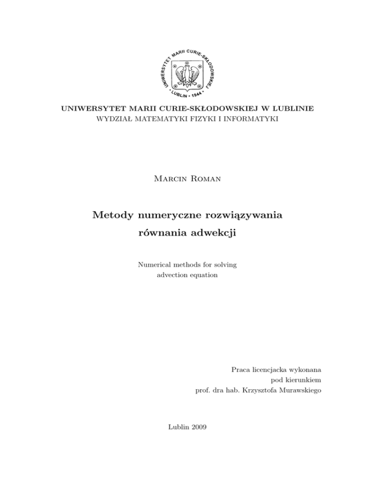 Metody numeryczne rozwiązywania równania adwekcji