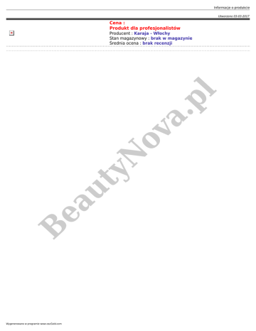 Informacje o produkcie Utworzono 03-03-2017 Cena : Produkt dla profesjonalistów B ea ut yN ov a. pl Producent : Karaja - Włochy Stan magazynowy : brak w magazynie Średnia ocena : brak recenzji Wygenerowano w programie www.oscGold.com