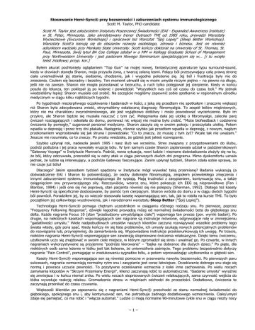 stałe normalne wzorce snu bez Hemi-Sync®, upłynęło dziewięć miesięcy. Większość klientów jednak uzyskuje tę