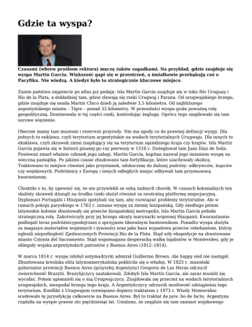 Gdzie ta wyspa? Czasami (wbrew prośbom rektora) męczę żaków zagadkami. Na przykład, gdzie znajduje się wyspa Martin Garcia. Większość gapi się w przestrzeń, a śmiałkowie przebąkują coś o Pacyfiku. Nie wiedzą. A kiedyś było to strategicznie kluczowe miejsce. Zanim państwo sięgniecie po atlas już podaję: Isla Martín García znajduje się w toku Río Uruguay i Río de la Plata, a dokładniej tam, gdzie zlewają się rzeki Urugwaj i Parana. Od urugwajskiego brzegu, gdzie znajduje się osada Martín Chico dzieli ją zaledwie 3,5 kilometra. Od najbliższego argentyńskiego miasta – Tigre – ponad 33 kilometry. W przeszłości wyspa grała poważną rolę geopolityczną. Dominowała w tej części rzeki, kontrolując żeglugę. Oprócz tego znajdowało się tam surowe więzienie. Obecnie mamy tam muzeum i rezerwat przyrody. Nie ma zgody co do prawnej definicji wyspy. Dla jednych to enklawa, czyli terytorium argentyńskie na wodach terytorialnych Urugwaju. Dla innych to eksklawa, czyli skrawek ziemi znajdujący się na terytorium sąsiedniego kraju czy krajów. Isla Martín García pojawia się w historii pisanej po raz pierwszy w 1516 r. Dożeglował tam Juan Díaz de Solis. Ponieważ zmarł właśnie członek jego załogi, Martín García, kapitan nazwał jego imieniem wyspę na wieczną pamiątkę. Po jakimś czasie zbudowano tam fortyfikacje, które szachowały okolicę. Traktowano to miejsce również jako przystanek, odskocznię do dalszej podróży: odkrywców, kupców czy wojskowych. Podróżnicy z Europy i innych odległych miejsc odbywali tam przymusową kwarantannę. Chodziło o to, by upewnić się, że nie przywlekli ze sobą żadnych chorób. W czasach kolonialnych ten skalisty skrawek dżungli na środku rzeki służył również za neutralną platformę negocjacyjną. Dyplomaci Portugalii i Hiszpanii spotykali się tam, aby rozwiązać problemy terytorialne. Ale w ramach pokoju paryskiego w 1763 r. uznano wyspę za ziemię hiszpańską. Gdy niedługo potem latynoskie kolonie zbuntowały się przeciw hiszpańskiej metropolis, Isla Martín García pełniła strategiczną rolę. Zakotwiczyły przy jej brzegu okręty marynarki wojennej Hiszpanii. Kwarantannie podlegali teraz podróżnicypodejrzani o sprzyjanie liberalnym buntownikom. Ponadto wyspa służyła za magazyn materiałów wojennych i żywności oraz jako baza wypadowa przeciw rebeliantom, którzy ogłosili niepodległość Zjednoczonych Prowincji Río de la Plata. Stąd szły ekspedycje na zbuntowane miasto Colonia del Sacramento. Stąd wspomagano desperacką walkę lojalistów w Montevideo, gdy je oblegały wojska argentyńskich patriotów z Buenos Aires (1812–1814). W marcu 1814 r. wyspę zdobył antymadrycki admirał Guillermo Brown. Ale happy end nie nastąpił. Zbuntowana kreolska elita latynoamerykańska pokłóciła się o władzę. W 1825 r. masoński gubernator prowincji Buenos Aires (przyszłej Argentyny) Gregorio de Las Heras odrzucił zwierzchność Brazylii. Brazylijczycy zaatakowali. Zdobyli Isla Martín García, ale zaraz musieli się wycofać. Potem upomnieli się o nią Urugwajczycy. Znajdowała się przecież na wodach terytorialnych urugwajskich, nieopodal brzegu tego kraju. A Argentyńczycy odrzucili możliwość odstąpienia tego terytorium. Konflikt z Urugwajem rozwiązano dopiero traktatem z 1973 r. Wtedy Montevideo scedowało tę jurysdykcję całkowicie na Buenos Aires. Był to traktat de jure, bo de facto, Argentyna rządziła na wyspie prawie sto pięćdziesiąt lat. Ustalono, że znajdzie się tam zamiast wojskowego garnizonu rezerwat przyrody. Ponadto strony zgodziły się uznać zwierzchnictwo nad nowo powstającymi wyspami według ich położenia vis-a-vis państwowej linii demarkacyjnej. W tym czasie nieopodal Isla Martín García wynurzyła się piaszczysta Isla Timoteo Domingues, która stykała się z nią na północnym cyplu. Ta druga została przyznana Urugwajowi. Aha, w 1773 r. storzono na wyspie więzienie. Pierwszymi więźniami były osoby, które publicznie przeklinały przy kobietach w Buenos Aires. Ponad sto lat potem argentyńska marynarka wojenna prowadziła na wyspie więzienie wojskowe. Siedzieli w nim jeńcy z wojen indiańskich. Internowano tam marynarzy obcych flot, na przykład niemieckiej w czasie II wojny światowej, jak również obalonych prezydentów. Chociaż więzienie zamknięto formalnie w 1957 r., eksprezydent Arturo Frondozi wylądował tam jeszcze w 1962 r. Taka sobie wysepka. Popularna wśród turystów. Ale jak wybuchnie jakiś konflikt, Argentyńczycy bezsprzecznie ją zremilitaryzują. Jest strategiczna! Marek Jan Chodakiewicz Waszyngton, 6 października 2015