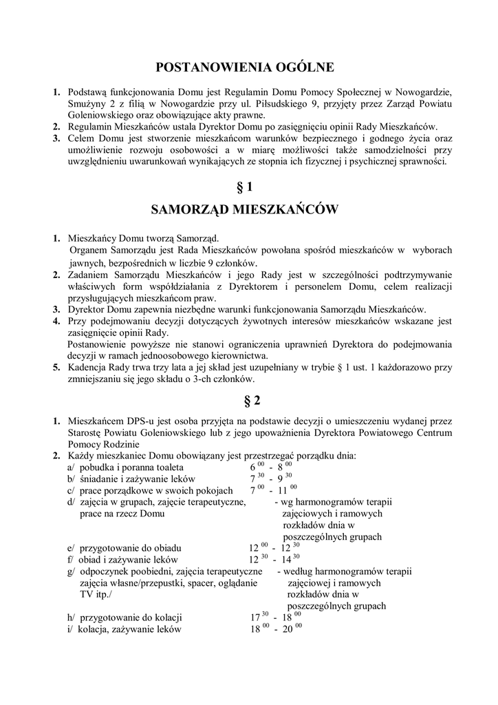Regulamin - Dom Pomocy Społecznej w Nowogardzie