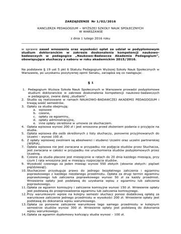 ZARZĄDZENIE Nr 1/02/2016 KANCLERZA PEDAGOGIUM