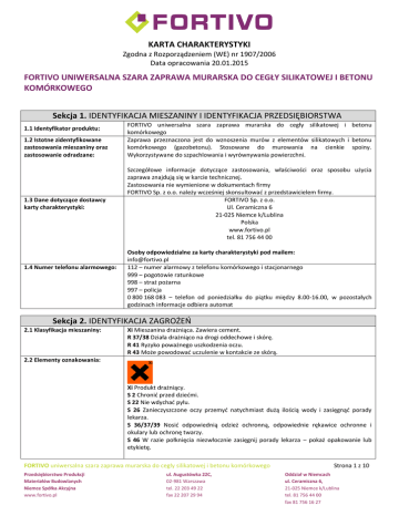 KARTA CHARAKTERYSTYKI FORTIVO UNIWERSALNA SZARA