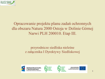 Opracowanie projektu planu zadań ochronnych dla obszaru Natura 2000 Ostoja w Dolinie Górnej Narwi PLH 200010. Etap III. przyrodnicze siedliska nieleśne z załącznika I Dyrektywy Siedliskowej 1 Obszar Natura 2000 Ostoja w Dolinie Górnej Narwi PLH 200010. Bondary-Narew. 2 Obszar Natura 2000 Ostoja w Dolinie Górnej Narwi PLH 200010. Bondary-Narew. 3 Nieleśne siedlisk przyrodnicze z załącznika I Dyrektywy Siedliskowej obszaru Natura 2000 Ostoja w Dolinie Górnej Narwi PLH 200010. Przedmiot ochrony 6120 Ciepłolubne śródlądowe murawy napiaskowe (Koelerion glaucae) Ocena Powierzchnia/liczb Stopień ogólna a stanowisk rozpoznania C Powierzchnia 4,68 Bardzo dobry ha-liczba płatów 7 Zakres prac terenowych Badania terenowe nad rozmieszczeniem i stanem siedliska wykonano w 7 płatach w lipcu 2011r. W każdym płacie wykonano zdjęcia fitosocjologiczne metodą Braun-Blanqueta. Wszystkie płaty siedliska maja określoną pozycje GPS. Wykonano ocenę struktury i funkcji według wskaźników monitoringu siedlisk Natura 2000 (GIOŚ 2007-2009). 2330 Wydmy śródlądowe z C murawami napiaskowymi Powierzchnia 1,33 ha-liczba płatów 2 Bardzo dobry Badania terenowe nad rozmieszczeniem i stanem siedliska wykonano w 7 płatach w lipcu 2011r. W każdym płacie wykonano zdjęcia fitosocjologiczne metodą Braun-Blanqueta. Wszystkie płaty siedliska maja określoną pozycje GPS. Wykonano ocenę struktury i funkcji według wskaźników monitoringu siedlisk Natura 2000 (GIOŚ 2007-2009). 3150 Starorzecza i naturalne eutroficzne zbiorniki wodne. ze zbiorowiskami z Nympheion, Potamion Powierzchnia 1,31 ha-liczba płatów 1 Dostateczny Badania terenowe nad rozmieszczeniem i stanem siedliska wykonano w 1 płacie w lipcu 2011r. Płat siedliska ma określoną pozycję GPS. Wykonano stan zachowania i ocenę stanu ogólnego według instrukcji wypełniania sdf. C 4 Ciepłolubne śródlądowe murawy napiaskowe 6120 5 Gatunki charakterystyczne. Ciepłolubne śródlądowe murawy napiaskowe 6120. Helichrysum arenarium (L.) MOENCH - Kocanki piaskowe Sedum acre L. - Rozchodnik ostry Corynephorus canescens L. - Szczotlicha siwa Źródło:internet Koeleria glauca (SPRENG.) DC. - Strzęplica sina Armeria maritima (MILL.) WILLD. - Zawciąg pospolity Jasione montana L. - Jasieniec piaskowy Źródło:internet Thymus serpyllum L. em. FR. - Macierzanka piaskowa, Źródło:internet Ciepłolubne śródlądowe murawy napiaskowe 6120. Gatunki współtworzące kombinację florystyczną płatów muraw napiaskowych 6120 to krwawnik pospolity Achillea millefolium, rzepik pospolity Agrimonia eupatoria, mietlica pospolita Agrostis capilaris, turzyca owłosiona Carex hirta, turzyca zajęcza Carex ovalis, starzec Jakubek Senecio jacobea, dziurawiec zwyczajny Hypericum perforatum, chaber nadreński Centaurea stoebe. Płaty w degeneracji, struktura niskich traw z barwnie kwitnącymi dwuliściennymi jest zaburzona. Użytkowanie zostało porzucone, zarastają gatunkami łąkowymi i ruderalnymi. Płaty często bardziej przypominają siedliska łąkowe niż murawowe. Kserotermiczne trawy kępowe są wypierane przez ekspansywne trawy takie jak tomka wonna Anthoxanthum odoratum, śmiałek darniowy Deschampsia caespitosa, kupkówka pospolita Dactylis glomerata. Strukturę roślinności zaburzają też gatunki ruderalne: dziewanna pospolita Verbascum nigrum, farbownik lekarski Anchusa officinalis, bylica polna Artemisia campestris, nostrzyk biały Melilotus albus. Zachodzi sukcesja naturalna – wkraczanie drzew i krzewów. 7 Ciepłolubne śródlądowe murawy napiaskowe 6120. Rozmieszczenie. 8 Ciepłolubne śródlądowe murawy napiaskowe 6120. Rozmieszczenie. 9 Ciepłolubne śródlądowe murawy napiaskowe 6120. Rozmieszczenie. 10 Ciepłolubne śródlądowe murawy napiaskowe 6120. Stan ochrony. Parametr 1(1,2,3) 2- (4) 3-(5) 4-(6,7) Powierzchnia siedliska na stanowisku Gatunki charakterystyczne Obce gatunki inwazyjne Rodzime gatunki ekspansywne roślin zielnych Ekspansja krzewów i podrostu drzew Struktura przestrzenna płatów muraw Zachowanie strefy ekotonowej Ogólnie struktura i funkcje Perspektywy ochrony Ocena ogólna U1 U1 U1 U1 5(8,9, 10) U1 6(11) 7(12) U1 U1 U1 U1 U1 U1 U1 U1 U1 U1 U2 U2 U1 FV FV U1 U2 U2 U2 U2 U2 U2 U2 U1 U1 U1 U1 U1 U1 U1 U2 U2 U2 FV U2 U2 U2 U2 U2 U2 U2 U2 U2 U2 U2 U2 U2 U2 U2 U2 U2 U2 U2 U2 U2 U2 U2 U2 U2 U2 U2 U2 U2 U2 U2 11 Wydmy śródlądowe z murawami napiaskowymi 2330 12 Gatunki charakterystyczne. Wydmy śródlądowe z murawami napiaskowymi 2330 Cladonia - Chrobotek Polytrichum piliferum Schreb.- Płonnik włosisty 13 Wydmy śródlądowe z murawami napiaskowymi 2330. Dominujące są niskie rośliny, pokrycie stanowi do 70%, miejscami warstwa gleby w zasadzie nie jest pokryta przez roślinność. Gleba to piaski, podłoże jest wybitnie suche, nasłonecznione. Najniższą warstwę stanowi kilka gatunków: porosty Cladonia sp., mech płonnik włosisty Polytrichum piliferum, rozchodnik ostry Sedum acre. W wyższym piętrze roślinności pojedynczo występują: szczotlicha siwa Corynephorus canescens, kocanki piaskowe Helichrysum arenarium, strzęplica sina Koeleria glauca. Kolorystycznie wyraźnie zaznacza się goździk kropkowany Dianthus deltoides, macierzanka piaskowa Thymus serpyllum. Pojedynczo pojawiają się niskie turzyce: zajęcza Carex ovalis, owłosiona Carex hirta. Zachodzi sukcesja naturalna – wkraczanie drzew i krzewów. 14 Wydmy śródlądowe z murawami napiaskowymi 2330. Rozmieszczenie. 15 Wydmy śródlądowe z murawami napiaskowymi 2330. Stan ochrony. Parametr 1-(1,2) Powierzchnia siedliska na stanowisku Gatunki charakterystyczne Obce gatunki inwazyjne Rodzime gatunki ekspansywne roślin zielnych Ekspansja krzewów i podrostu drzew Struktura przestrzenna płatów muraw Zachowanie strefy ekotonowej Ogólnie struktura i funkcje Perspektywy ochrony Ocena ogólna U1 2(3,4) U1 U1 U1 U1 FV U2 U2 U2 U1 FV U2 U2 U2 U2 U2 U2 U2 U2 U2 16 Starorzecza i naturalne eutroficzne zbiorniki wodne ze zbiorowiskam