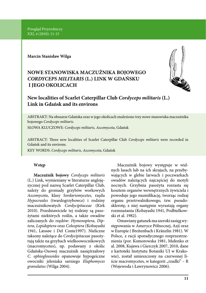 NOWE STANOWISKA MACZUŻNIKA BOJOWEGO CORDYCEPS