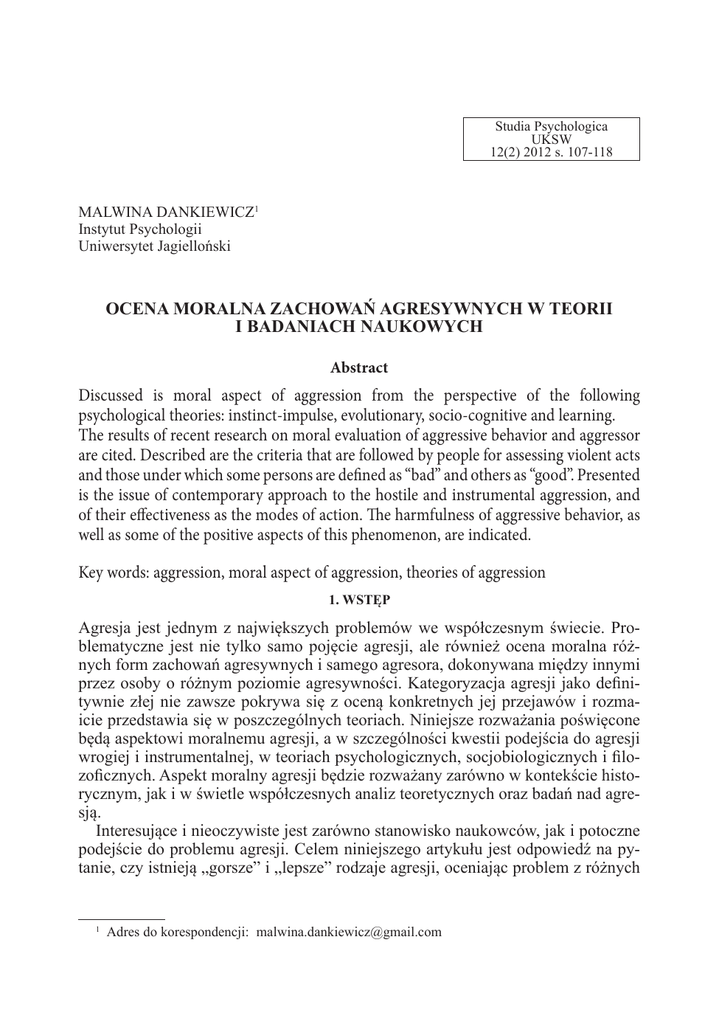 Malwina Dankiewicz: Ocena moralna zachowań agresywnych w