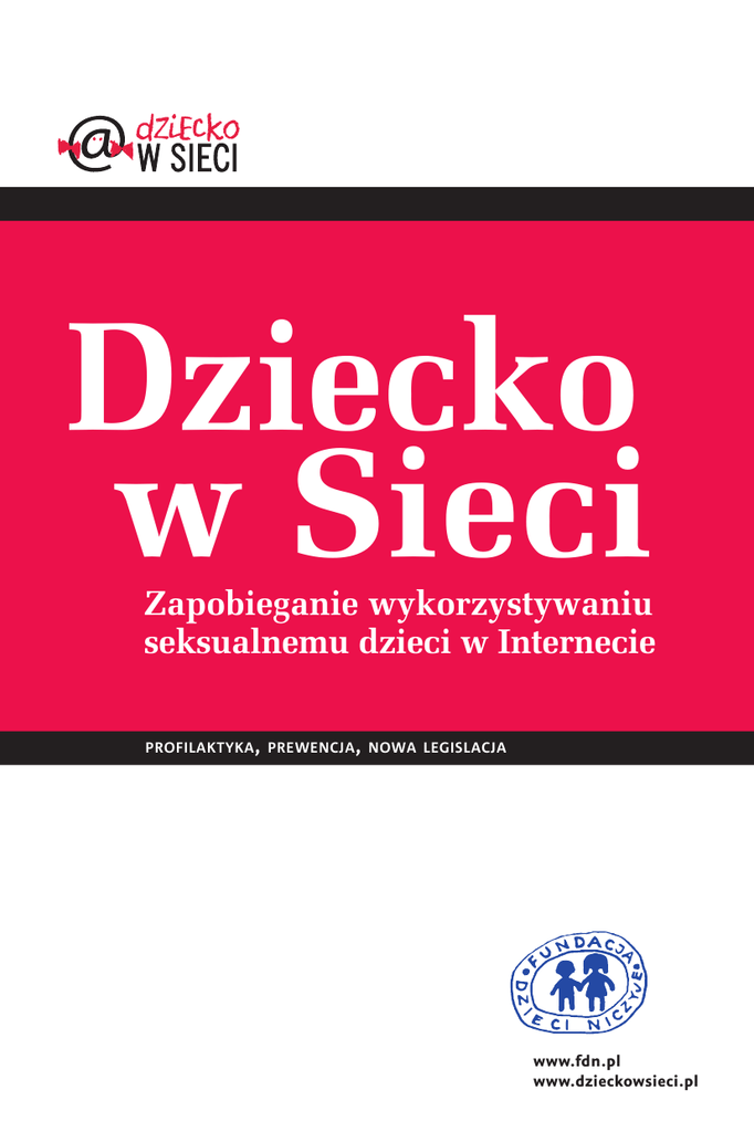 Dziecko w Sieci Zapobieganie wykorzystywaniu seksualnemu dzieci w Internecie profilaktyka , prewencja , nowa legislacja www.fdn.pl www.dzieckowsieci.pl Wstęp 2 Nowelizacja kodeksu karnego 3 „Dziecko w Sieci” – zapobieganie wykorzystywaniu seksualnemu dzieci w Internecie 4 Proces uwodzenia dzieci w Internecie 6 Problem 6 Etapy groomingu 7 Ochrona prawna dzieci przed wykorzystywaniem seksualnym w Internecie 9 Copyright © 2010 Fundacja Dzieci Niczyje Fundacja Dzieci Niczyje 03-926 Warszawa, ul. Walecznych 59 Tel. (22) 616 02 68; [email protected]; www.fdn.pl, www.dzieckowsieci.pl Skład i opracowanie grafczne: Olga Figurska, www.lunatikot.pl ISBN 978-83-926185-7-7 Zmiany w prawie wchodzące w życie 8 czerwca 2010 r. Uprawnienia Policji 12 11 Zapobieganie i zwalczanie wykorzystywania seksualnego dzieci w Internecie – działania Policji 14 Pomoc w sytuacjach wykorzystywania seksualnego dzieci online 17 Helpline.org.pl 17 Dyżurnet 18 Telefon Zaufania dla Dzieci i Młodzieży 116 111 18 Dziecięcy Telefon Zaufania Rzecznika Praw Dziecka 19 Oferta edukacyjna programu „Dziecko w Sieci” 20 Oferta edukacyjna dla klas I-III szkół podstawowych 21 Oferta edukacyjna dla klas IV-VI szkół podstawowych 21 Oferta edukacyjna dla klas I-III szkół gimnazjalnych 22 Oferta dla profesjonalistów i rodziców – kurs-elearning 22 Standardy i procedury 23 1 Wstęp Nowelizacja kodeksu karnego er wca 2010 ob ow ią zuje od 8 cz 8 czerwca 2010 roku weszła w życie nowelizacja kodeksu karnego, która penalizuje proceder uwodzenia dzieci w Internecie. Od tego dnia już nawet nawiązywanie w Internecie kontaktów z dzieckiem, których celem jest doprowadzenie do spotkania i wykorzystania seksualnego (z ang. grooming), jest przestępstwem. Kodeks karny przewiduje za przestępstwo tego typu do dwóch lat pozbawienia wolności (art. 200a § 2) lub nawet do trzech lat pozbawienia wolności, jeśli sprawca wykorzystał np. niewiedzę lub nieświadomość dziecka (art. 200a § 1). Problem uwodzenia dzieci w Internecie istnieje, od kiedy tylko upowszechnił się dostęp do sieci. Z jednej strony młodzi internauci szukający nowych znajomych za pośrednictwem komunikatorów i serwisów społecznościowych, z drugiej – osoby o skłonnościach pedoflnych, dla których sieć jest doskonałym narzędziem, ogromnie ułatwiającym dostęp do potencjalnych ofar. Praktycznie wszystkie dzieci w wieku szkolnym w Polsce mają już dostęp do Internetu. Najmłodsi internauci bezrefeksyjnie podają w sieci informacje, które często pozwalają na ich odszukanie w świecie realnym. Według badań sondażowych, blisko 3/4 spośród najmłodszych internautów otrzymuje w sieci propozycje spotkania w świecie realnym. Ponad 1/4 skorzystała z niej co najmniej raz, zazwyczaj nawet nie informując o tym swoich rodziców (FDN, Gemius 2006). Tym większym sukcesem jest więc wprowadzenie przepisów pozwalających na ściganie i karanie osób, których celem jest wykorzystanie dziecka, nawet jeśli nie doszło do niego w świecie realnym. Nowelizacja prawa to przede wszystkim nowe narzędzie w rękach wymiaru sprawiedliwości i policjantów, dotychczas skarżących się na bezsilność, nawet w przypadkach ewidentnych prób uwodzenia dziecka. W niniejszej broszurze znajdą Państwo informacje o nowej odsłonie kampanii „Dziecko w Sieci”, nowych regulacjach prawnych dotyczących uwodzenia dzieci online oraz działaniach proflaktycznych związanych z tym problemem, jak również możliwości uzyskania pomocy. U USTAWA z dnia 5 listopada 2009 r. o zmianie ustawy — Kodeks karny, ustawy — Kodeks postępowania karnego, ustawy — Kodeks karny wykonawczy, ustawy — Kodeks karny skarbowy oraz niektórych innych ustaw, Dziennik Ustaw 2009 nr 206 poz. 1589 (…) Art. 200a. § 1. Kto w celu popełnienia przestępstwa określonego w art. 197 § 3 pkt 21 lub art. 2002, jak również produkowania lub utrwalania treści pornografcznych, za pośrednictwem systemu teleinformatycznego lub sieci telekomunikacyjnej nawiązuje kontakt z małoletnim poniżej lat 15, zmierzając, za pomocą wprowadzenia go w błąd, wyzyskania błędu lub niezdolności do należytego pojmowania sytuacji albo przy użyciu groźby bezprawnej, do spotkania z nim, podlega karze pozbawienia wolności do lat 3. Art. 200a. § 2. Kto za pośrednictwem systemu teleinformatycznego lub sieci telekomunikacyjnej małoletniemu poniżej lat 15 składa propozycję obcowania płciowego, poddania się lub wykonania innej czynności seksualnej lub udziału w produkowaniu lub utrwalaniu treści pornografcznych, i zmierza do jej realizacji, podlega grzywnie, karze ograniczenia wolności albo pozbawienia wolności do lat 2. Art. 200b. Kto publicznie propaguje lub pochwala zachowania o charakterze pedoflskim, podlega grzywnie, karze ograniczenia wolności albo pozbawienia wolności do lat 2. Art. 197 kk § 3. Jeżeli sprawca dopuszcza się zgwałcenia: (...) 2) wobec małoletniego poniżej lat 15, (...) podlega karze pozbawienia wolności na czas nie krótszy od lat 3. 2 Art. 200. kk § 1. Kto obcuje płciowo z małoletnim poniżej lat 15 lub dopuszcza się wobec takiej osoby innej czynności seksualnej lub doprowadza ją do poddania się takim czynnościom albo do ich wykonania, podlega karze pozbawienia wolności od lat 2 do 12. § 2. Tej samej karze podlega, kto w celu zaspokojenia seksualnego prezentuje małoletniemu poniżej lat 15 wykonanie czynności seksualnej. 1 3 „Dziecko w Sieci” – zapobieganie wykorzystywaniu seksualnemu dzieci w Internecie O O problemie, jakim jest nawiązywanie przez dzieci i młodzież kontaktów z osobami znawarTo wiedzieć nymi wyłącznie z sieci, zaczęło się w Polsce mówić ponad 5 lat temu. Przyczyniła się do internautów tego w dużej mierze kampania poświęcow wieku 12-17 lat na internetowej pedoflii, przeprowadzona było przez obce przez Fundację Dzieci Niczyje w 2004 roku pod hasłem „Nigdy nie wiadomo, kto jest osoby na