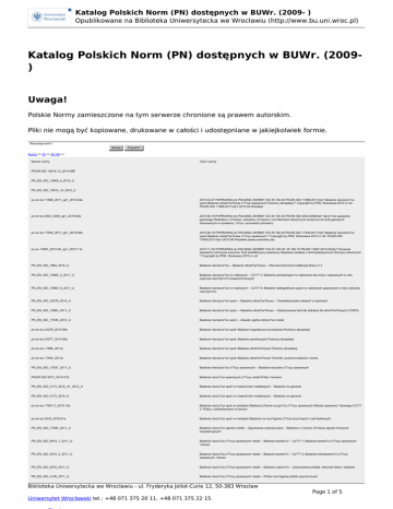(PN) dostępnych w BUWr. (2009- ) - Biblioteka Uniwersytecka we