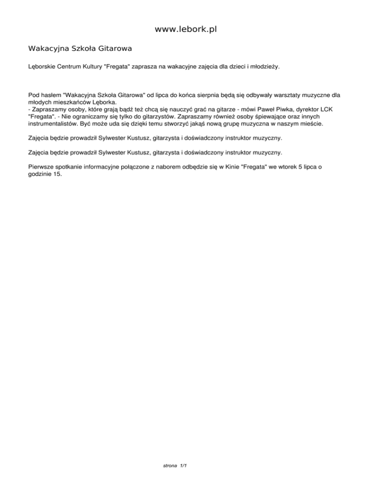 www.lebork.pl - Wakacyjna Szkoła Gitarowa