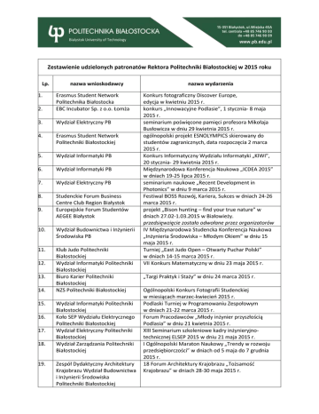 Zestawienie udzielonych patronatów Rektora Politechniki