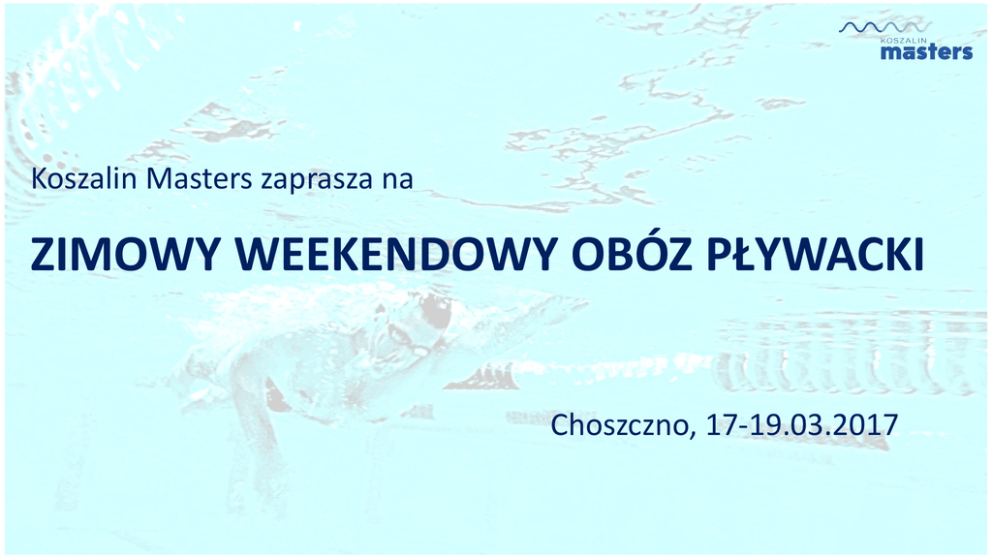 Koszalin Masters zaprasza na ZIMOWY WEEKENDOWY OBÓZ PŁYWACKI Choszczno, 17-19.03.2017 Celem obozu jest: • Wymiana doświadczeń treningowych • Integracja mastersów z różnych klubów • Doskonalenie techniki pływania • Realizacja „mikrocyklu” treningowego w zakresie wytrzymałości ogólnej, progu tlenowego oraz elementów treningu sprinterskiego • Mini zawody w 3 dniu obozu (sztafety klubowe) Zakwaterowanie w Ośrodku Sportowo Wypoczynkowym w Choszcznie http://www.osw.choszczno.pl/ w pokojach 2 i 3 osobowych. Treningi na basenie w CHOSZCZNIE http://crs.choszczno.pl/plywalnia/ W zależności od wielkości grupy będziemy wynajmowali od 3 torów do całego basenu. Wyżywienie całodzienne w cenie. TRUNKI i inne przyjemności życia … we własnym zakresie. PROGRAM: PIĄTEK 17.03.2017 17.00 – 19.00 Rejestracja w Ośrodku 19.30– 21.30 TRENING NR 1 (basen) 21.45 – 22.30 Kolacja 22.30 Integracja SOBOTA 18.03.2017 08.00 – 09.00 Śniadanie 10.30 – 12.30 TRENING NR 2 (basen) 13.30 – 14.30 Obiad 16.30 – 17.30 TRENING NR 3 (na lądzie) 17.45 – 19.45 TRENING NR 4 (basen) 20.00 – 21.00 Kolacja 21.00 Dalsza integracja NIEDZIELA 19.03.2017 08.00 – 09.00 Śniadanie 10.00 – 12.00 TRENING NR 5 (basen) 13.00 – 14.00 Obiad, Podsumowanie 14.30 Wyjazd Szacowany koszt uczestnictwa wynosi 275 PLN – 300 PLN w zależności od ilości uczestników. W przypadku zgłoszenia się mniej niż 15 chętnych obóz nie będzie organizowany. Maksymalna ilość uczestników - 30 osób. W w/w cenie jest nocleg z całodziennym wyżywieniem, wynajęcie basenu oraz trener. Podane koszty to koszty maksymalne. Nasz obóz organizowany jest na warunkach non – profit i w przypadku uzyskania niższych kosztów cena dla uczestników zostanie obniżona. Za dodatkową opłatą ok. 30 PLN sobotnia kolacja może mieć charakter obiadowo – imprezowy. Kwestia ta może być ustalona na miejscu w późniejszym terminie w zależności od wspólnych ustaleń grupy. Zapisy przyjmowane są do dnia 22.01.2017r poprzez rejestracje w Internecie pod linkiem: https://docs.google.com/spreadsheets/d/1TzRqon7f7kjFq9yq_QcfOiUbfD7UJrUkNqEwEf-sHO8/edit?usp=sharing Liczba miejsc ograniczona!!!!!!!! ZAPRASZAMY Dodatkowych informacji udziela Jakub Kielar ( tel. 693 193 137, email: [email protected] )