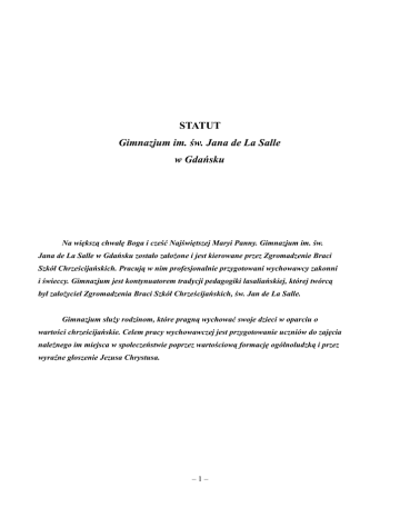 STATUT Gimnazjum im. św. Jana de La Salle w Gdańsku