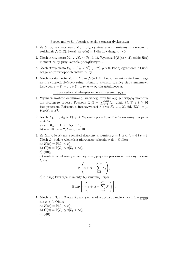 1. Załóżmy, że straty netto Y1 , . . . , Yn są niezależnymi zmiennymi losowymi o