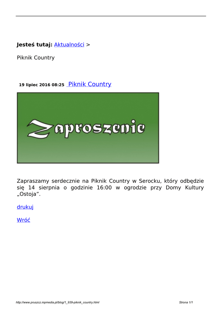 Jesteś tutaj: Aktualności > Piknik Country Zapraszamy