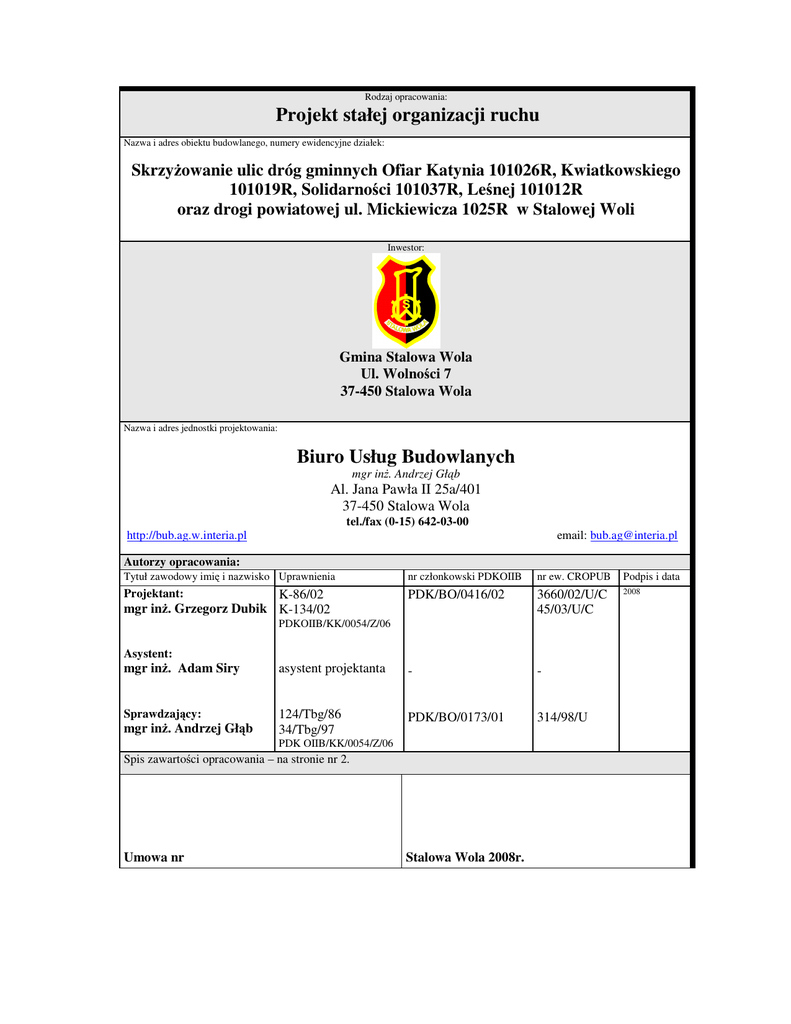 Projekt stałej organizacji ruchu Biuro Usług Budowlanych