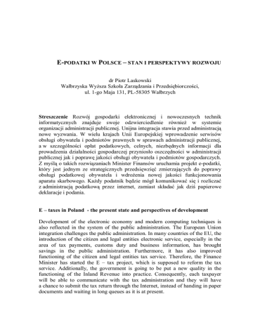 E-PODATKI W POLSCE – STAN I PERSPEKTYWY ROZWOJU dr
