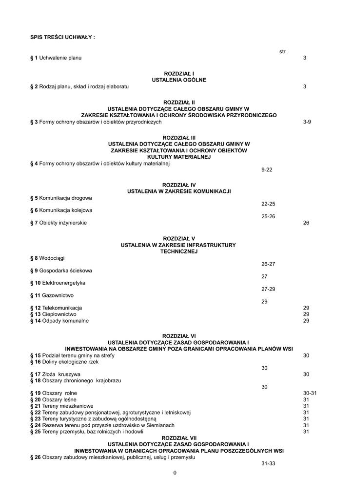 SPIS TREŚCI UCHWAŁY : str. § 1 Uchwalenie planu 3 ROZDZIAŁ I USTALENIA OGÓLNE § 2 Rodzaj planu, skład i rodzaj elaboratu 3 ROZDZIAŁ II USTALENIA DOTYCZĄCE CAŁEGO OBSZARU GMINY W ZAKRESIE KSZTAŁTOWANIA I OCHRONY ŚRODOWISKA PRZYRODNICZEGO § 3 Formy ochrony obszarów i obiektów przyrodniczych 3-9 ROZDZIAŁ III USTALENIA DOTYCZĄCE CAŁEGO OBSZARU GMINY W ZAKRESIE KSZTAŁTOWANIA I OCHRONY OBIEKTÓW KULTURY MATERIALNEJ § 4 Formy ochrony obszarów i obiektów kultury materialnej 9-22 ROZDZIAŁ IV USTALENIA W ZAKRESIE KOMUNIKACJI § 5 Komunikacja drogowa 22-25 § 6 Komunikacja kolejowa 25-26 § 7 Obiekty inżynierskie 26 ROZDZIAŁ V USTALENIA W ZAKRESIE INFRASTRUKTURY TECHNICZNEJ § 8 Wodociągi 26-27 § 9 Gospodarka ściekowa 27 § 10 Elektroenergetyka 27-29 § 11 Gazownictwo 29 § 12 Telekomunikacja § 13 Ciepłownictwo § 14 Odpady komunalne 29 29 29 ROZDZIAŁ VI USTALENIA DOTYCZĄCE ZASAD GOSPODAROWANIA I INWESTOWANIA NA OBSZARZE GMINY POZA GRANICAMI OPRACOWANIA PLANÓW WSI § 15 Podział terenu gminy na strefy § 16 Doliny ekologiczne rzek 30 § 17 Złoża kruszywa § 18 Obszary chronionego krajobrazu 30 § 19 Obszary rolne § 20 Obszary leśne § 21 Tereny mieszkaniowe § 22 Tereny zabudowy pensjonatowej, agroturystyczne i letniskowej § 23 Tereny turystyczne z zabudową ogólnodostępną § 24 Rezerwa terenu pod przyszłe uzdrowisko w Siemianach § 25 Tereny przemysłu, baz rolniczych i hodowli ROZDZIAŁ VII USTALENIA DOTYCZĄCE ZASAD GOSPODAROWANIA I INWESTOWANIA W GRANICACH OPRACOWANIA PLANU POSZCZEGÓLNYCH WSI § 26 Obszary zabudowy mieszkaniowej, publicznej, usług i przemysłu 31-33 0 30 30 30-31 31 31 31 31 31 31 § 27 Ochrona przed hałasem 33 § 28 Obrona cywilna § 29 Ochrona przeciwpożarowa 33 33 ROZDZIAŁ VIII WYKAZ OPRACOWANYCH MIEJSCOWYCH PLANÓW ZAGOSPODAROWANIA PRZESTRZENNEGO W GMINIE IŁAWA, ZACHOWUJĄCYCH MOC OBOWIĄZUJĄCĄ § 30 Zestawienie tabelaryczne planów 33 ROZDZIAŁ IX USTALENIA KOŃCOWE § 31 Plany, które tracą moc 33 § 32 Realizacja celów publicznych 34 § 33 Opłaty planistyczne 34 § 34 Przechowywanie planu 34 § 35 Wykonanie uchwały 34 § 36 Obowiązywanie uchwały 34 1 UCHWAŁA NR XIII/108/2003 Rady Gminy w Iławie z dnia 3 grudnia 2003r. w sprawie uchwalenia miejscowego planu zagospodarowania przestrzennego gminy Iława Na podstawie art. 26 ustawy z dnia 7 lipca 1994 r. o zagospodarowaniu przestrzennym (tekst jednolity: Dz. U. Nr 15 z 1999 r. poz. 139 z późniejszymi zmianami) w związku z art. 85 ust. 2 ustawy z dnia 27 marca 2003r. o planowaniu i zagospodarowaniu przestrzennym (Dz. U. Nr 80 poz. 717) oraz z art. 18 ust. 2 pkt 5 i art. 40 ust. 1 ustawy z dnia 8 marca 1990 r. o samorządzie gminnym (tekst jednolity: Dz. U. Nr 142 z 2001 r. poz. 1591 z późniejszymi zmianami) Rada Gminy uchwala co następuje: § 1. 1. Uchwala się miejscowy plan zagospodarowania przestrzennego gminy Iława zwany dalej planem. Przedmiot i zakres planu został określony w uchwale Nr Rady XI/71/99 Gminy Iława z dnia 25 czerwca 1999 r. Rozdział I Ustalenia ogólne § 2. 1. Miejscowy plan zagospodarowania przestrzennego gminy Iława składa się: 1) z ustaleń planu stanowiących treść niniejszej uchwały, 2) z rysunku „A” planu w skali 1 : 25 000 stanowiącego załącznik Nr 1 do niniejszej uchwały, 3) z rysunków planów „B” 47 wsi (album) w skali 1 : 5 000 stanowiących załącznik Nr 2 do niniejszej uchwały. 2. Ustalenia odnoszące się do rysunku „A” planu w skali 1: 25 000 obejmują obszar gminy w aktualnych granicach administracyjnych. 3. Ustalenia odnoszące się do rysunków „B” planu 47 wsi (album) w skali 1: 5000 obejmują tereny w granicach opracowania planów poszczególnych wsi. Rozdział II Ustalenia dotyczące całego obszaru gminy w zakresie kształtowania i ochrony środowiska przyrodniczego § 3. 1. Zgodnie z Ustawą z dnia 27 kwietnia 2001 r. Prawo ochrony środowiska (Dz. U. Nr 62 poz. 627), Ustawą z dnia 16 października 1991 r. o ochronie przyrody (Dz. U. Nr 114 poz. 492 z późn. zmianami), Rozporządzeniem Nr 1 Wojewody Olsztyńskiego i Wojewody Elbląskiego z dnia 10 stycznia 1997 r (Dz. Urz. Woj. Olsztyńskiego Nr 4 poz. 30 z późn. zmianami) w sprawie zatwierdzenia „Planu Ochrony Parku Krajobrazowego Pojezierza Iławskiego” i Rozporządzeniami wykonawczymi do Ustaw, Ustawami i Rozporządzeniami pokrewnymi oraz Rozporządzeniem Nr 21 z dnia 14 kwietnia 2003 r. w sprawie wprowadzenia obszarów chronionego krajobrazu na terenie Województwa Warmińsko–Mazurskiego (Dziennik Urzędowy Województwa Warmińsko – Mazurskiego Nr 52 z dnia 22 kwietnia 2003 r. poz. 725). 2. Ustala się następujące formy ochrony obszarów i obiektów przyrodniczych: L.p. a 1. Charakterystyka obiektu b Istniejące rezerwaty przyrody: a) Rezerwat "Jezioro Karaś" obejmuje jezioro wraz z przyległymi terenami bagiennymi Obiekt ornitologiczny o powierzchni na terenie gminy Iława 581,29 ha. Oznaczenie na rysunku planu „A” c R1 Formy ochrony: Zarządzenie Ministra Leśnictwa i Przemysłu Drzewnego z 1958 r.; 1967 r.;1989 r (M. P. Nr 12 z 1958 r. Nr 65 z 1967 r. i Nr.17 z 1989 r) ustanawia rezerwaty i określa zasady gospodarki przestrzennej na ich terenie. Zabrania się zmiany stosunków wodnych, przekształceń, w tym przyległych terenów i wznoszenia wszelkich budowli. Lokalizacja obiektów i urządzeń budowlanych w odległości mniejszej niż 50 m od granicy rezerwatu wymaga zgody Wojewódzkiego Konserwatora Przyrody. Zasady lokalizacji obiektów i urządzeń budowlanych na terenach o różnych funkcjach lub różnych zasadach zagospodarowania powinny spełniać wymogi dopuszczalnego poziomu hałasu w środowisku, zawarte w art. 113 ust. 2 pkt. 1 ustawy z dnia 27 kwietnia 2001 br. Prawo ochrony środowiska (Dz. U. Nr 62, poz. 627 z późn. zmianami). a b c R2 b) Rezerw at "Jezior 2 o Jasne" obejmuj e jezioro Jasne i jezioro Luba wraz z torfowis kami i drzewo stanem okalają cym obydwa jeziora. Powierz chnia rezerwa t