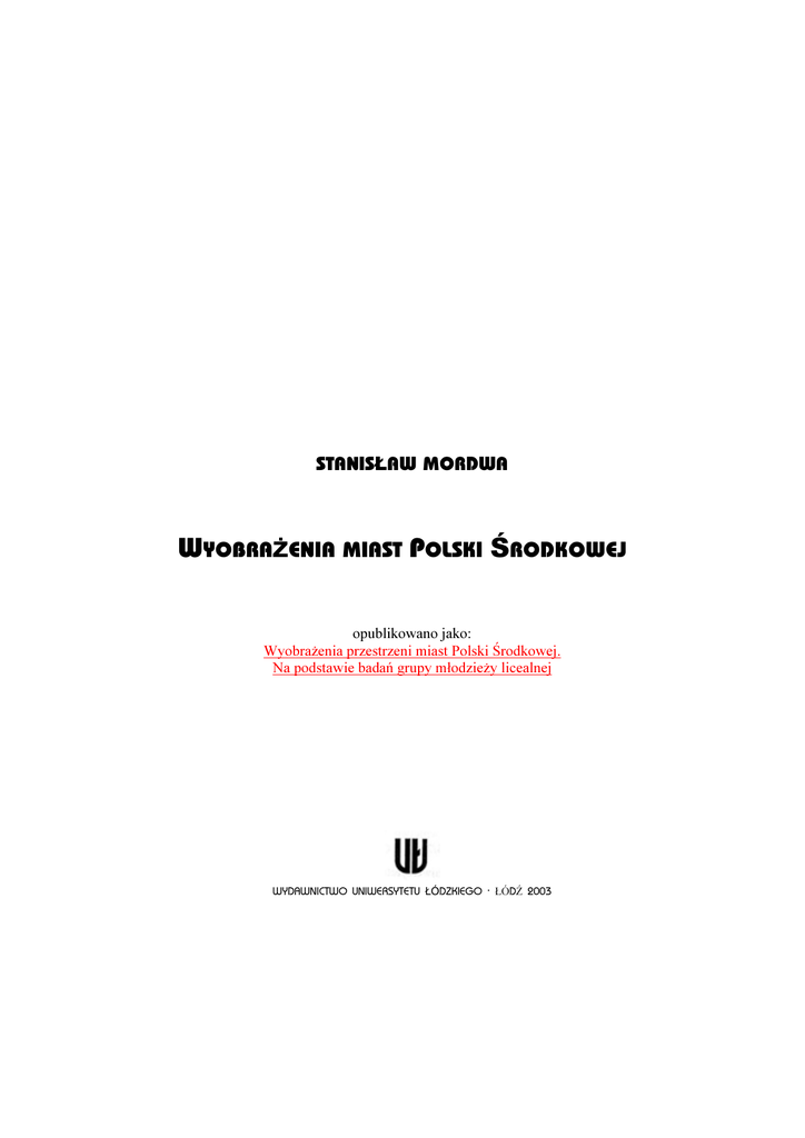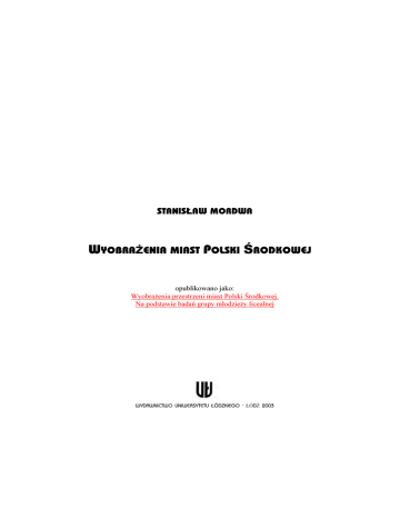 STANISŁAW MORDWA WYOBRAŻENIA MIAST POLSKI ŚRODKOWEJ opublikowano jako: Wyobrażenia przestrzeni miast Polski Środkowej. Na podstawie badań grupy młodzieży licealnej WYDAWNICTWO UNIWERSYTETU ŁÓDZKIEGO · ŁÓDŹ 2003 1 REDAKCJA NAUKOWO-DYDAKTYCZNA „FOLIA GEOGRAPHICA SOCIO-OECONOMICA” RECENZENT Krystian Heffner OKŁADKĘ PROJEKTOWAŁ Stanisław Mordwa (wykorzystano szkic Łodzi wykonany przez ucznia Technikum Drogowo-Geodezyjnego w 1990 roku) Wydrukowano z dostarczonych przez Autora gotowych materiałów © Copyright by Wydawnictwo Uniwersytetu Łódzkiego, Łódź 2003 Wydawnictwo Uniwersytetu Łódzkiego 2003 Wydanie I. Nakład 100 + 40 egz. Ark. druk. 11,125. Papier kl. III, 80 g, 70 × 100 Przyjęto do Wydawnictwa UŁ 20.12.2002 r. Zam. 85/3535/2003. Cena zł 18,Drukarnia Uniwersytetu Łódzkiego 90- 236 Łódź, ul. Pomorska 143 ISBN 83-7171-674-5 2 OD AUTORA Prezentowana monografia Wyobrażenia przestrzeni miast Polski Środkowej. Na podstawie badań grupy młodzieży licealnej jest skróconą i poprawioną wersją rozprawy doktorskiej, obronionej na Wydziale Biologii i Nauk o Ziemi Uniwersytetu Łódzkiego w maju 2000 roku. Promotorem pracy był prof. nadzw. dr hab. Jerzy Dzieciuchowicz, a recenzentami byli prof. dr hab. Stanisław Liszewski z Uniwersytetu Łódzkiego i prof. dr hab. Grzegorz Węcławowicz z Polskiej Akademii Nauk. Przygotowując pracę do druku starałem się przede wszystkim uwzględniać uwagi zgłoszone przez Recenzentów, a także wyniki dyskusji, jaka miała miejsce podczas publicznej obrony pracy doktorskiej. Skorzystałem także z cennych wskazówek Promotora. Wszystkim tym osobom serdecznie dziękuję za wyrażone opinie. Książkę dedykuję Agnieszce, oczywiście… Stanisław Mordwa 3 4 SPIS TREŚCI 1. Wprowadzenie............................................................................................................ 7 1.1. Przedmiot i cele badań ...................................................................................... 14 1.2. Zagadnienia terminologiczne ............................................................................ 17 1.3. Źródła i metody badań ....................................................................................... 25 2. Ogólna charakterystyka respondentów..................................................................... 31 2.1. Cechy społeczne i demograficzne ..................................................................... 31 2.2. Przywiązanie mieszkańców do miasta .............................................................. 34 3. Opisowy aspekt wyobrażenia przestrzeni miast ....................................................... 42 3.1. Zawartość odręcznych szkiców ......................................................................... 42 3.1.1. Orientacja ................................................................................................... 44 3.1.2. Skala i zasięg przestrzenny ......................................................................... 46 3.1.3. Elementy wyobrażeń .................................................................................. 47 3.1.4. Rozmieszczenie przestrzenne elementów .................................................. 52 3.2. Klasyfikacja struktury map wyobrażeniowych ................................................. 60 3.3. Styl szkiców ...................................................................................................... 69 3.4. Czynniki kształtujące opisowy aspekt wyobrażenia przestrzeni miast............. 71 4. Wartościujący i symboliczny aspekt wyobrażeń przestrzeni miast .......................... 76 4.1. Świadomościowy podział przestrzeni miast ...................................................... 79 4.2. Waloryzacja miejsc w miastach Polski Środkowej ........................................... 85 4.2.1. Czy miejsca w różnych miastach są podobnie wartościowane? ................. 95 4.3. Preferencje mieszkaniowe ................................................................................. 97 4.3.1. Mapy preferencji mieszkaniowych miast Polski Środkowej ...................... 98 4.3.2. Charakterystyki miejsc wpływające na preferencje mieszkaniowe .......... 107 4.4. Symboliczny wizerunek miast ......................................................................... 110 4.5. Czynniki kształtujące wartościujący i symboliczny aspekt wyobrażeń.......... 121 4.6. Model wyobrażeniowy miast Polski Środkowej ............................................. 125 5. Wyobrażenie Łodzi ................................................................................................ 130 5.1. Dystans poznawczy ......................................................................................... 130 5.2. Synonimy i symbole Łodzi.............................................................................. 138 5.3. Waloryzacja Łodzi .......................................................................................... 146 5.4. Łódź wśród innych miast Polski...................................................................... 148 5.5. Czynniki kształtujące wyobrażenie Łodzi ....................................................... 159 6. Podsumowanie ....................................................................................................... 162 Literatura .................................................................................................................... 165 Spis tabel .................................................................................................................... 175 Spis rysunków ............................................................................................................ 176 5 6 1. WPROWADZENIE Wiedza jaką ludzie posiadają, w tym wiedza o charakterze przestrzennym, nie jest ani perfekcyjna, ani obiektywna. Takie, wydawałoby się oczywiste, stwierdzenie stosunkowo niedawno dało impuls do