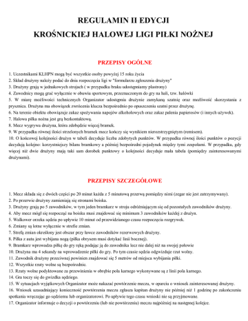 REGULAMIN II EDYCJI KROŚNICKIEJ HALOWEJ LIGI PIŁKI NOŻNEJ