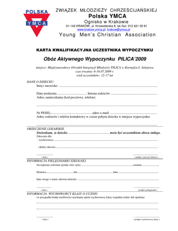 Karta uczestnika - YMCA Kraków