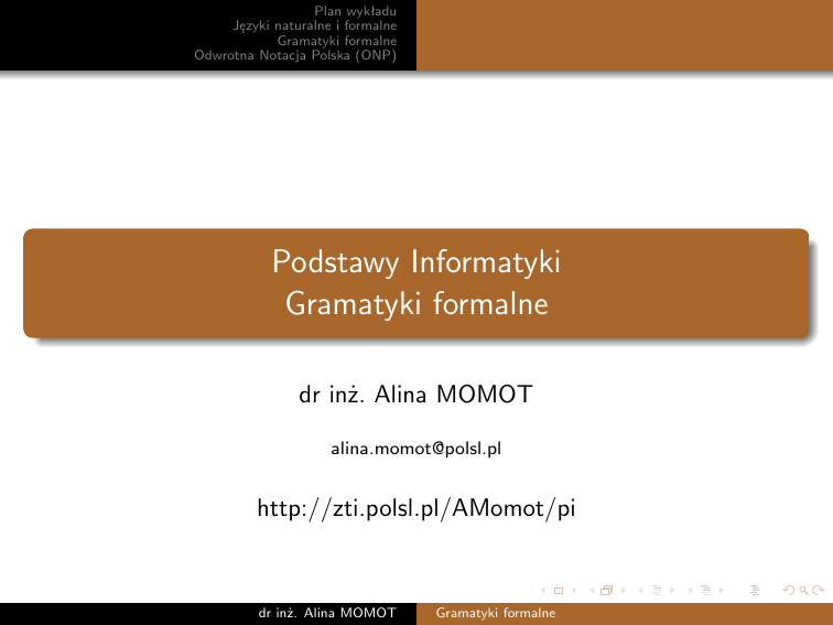 Podstawy Informatyki Gramatyki formalne