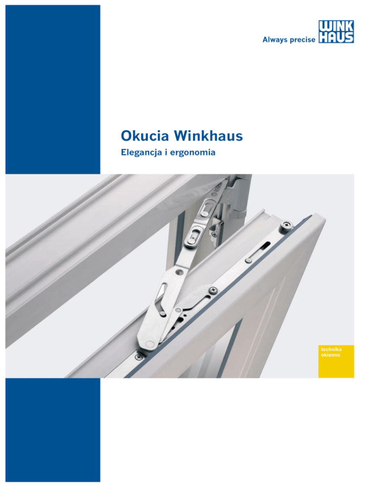Okucia Winkhaus Elegancja i ergonomia technika okienna Winkhaus Polska autoPilot Elegance – okucie, którego nie widać! Zawias rozwórki i zawias ramowy kryją się w tzw. luzie wrębowym pomiędzy ościeżnicą a skrzydłem okna. Gdy okno jest zamknięte, nie jest widoczny żaden element okucia obwiedniowego. Dzięki przesunięciu osi obrotu zawiasów, okna otwierają się tak samo jak przy zastosowaniu okuć tradycyjnych. autoPilot Elegance najczęściej stosuje się w ekskluzywnych oknach drewnianych, jednak okucie to znakomicie sprawdza się też w stolarce z PCW. autoPilot Elegance – okucie, którego nie widać! Projektanci ekskluzywnych budynków cenią eleganckie rozwiąza- Konstrukcja okucia Elegance oparta jest na sprawdzonym syste- nia. Do stylizowanych okien nie pasują nowoczesne okucia. Kolo- mie autoPilot. W wersji podstawowej wyposażono je w ogranicznik rystyka czy faktura stolarki narzuca niekiedy takie wymagania, otwarcia, który zabezpiecza otwarte okno przed zatrzaśnięciem którym tradycyjne okucia nie mogą sprostać. przy silnym wietrze lub przeciągu. Montowana standardowo autoPilot Elegance to „dyskretne” okucie, które przy zamkniętym blokada obrotu klamki uniemożliwia uchylenie skrzydła, gdy okno oknie jest zupełnie niewidoczne. Zawiasy skonstruowano w ta- jest otwarte. ki sposób, aby w całości mieściły się w przestrzeni pomiędzy Okucie autoPilot Elegance można stosować w oknach rozwiera- ościeżnicą a skrzydłem okna. Mimo to okna otwierają się tak samo, nych, uchylnych i uchylno-rozwieranych, wykonanych z drewna, jak przy zastosowaniu okuć tradycyjnych. Dzięki temu rozwiązaniu PCW lub aluminium. można wykonać eleganckie okna w dowolnym kolorze. Winkhaus Polska autoPilot Ergo – gdy trudno sięgnąć do klamki Niekiedy okna są zamontowane wysoko (np. na klatkach schodowych, w łazienkach) i z tego powodu trudno dostępne. W takich wypadkach warto zastosować okucie autoPilot Ergo. autoPilot Ergo – gdy trudno sięgnąć do klamki Budując lub modernizując kina, szkoły, hale sportowe czy centra okna jest odtąd czynnością dostępną także dla osób poruszają- handlowe, trzeba pamiętać o tym, aby mogły z nich korzystać cych się na wózkach. autoPilot Ergo umożliwia też korzystanie z także osoby niepełnosprawne. W myśl norm europejskich obiekty zamontowanych wysoko okien, np. na klatkach schodowych lub użyteczności publicznej muszą być dostępne dla osób porusza- łazienkach, które czesto są trudno dostępne. jących się na wózkach. Pojawia się więc coraz więcej rozwiązań W oknie z okuciem autoPilot Ergo uchylenie skrzydła następuje dedykowanych tej grupie odbiorców. To myśl o nich zainspirowała przez samo przekręcenie klamki do odpowiedniego położenia bez konstruktorów Winkhausa do zaprojektowania ergonomicznego konieczności pociągnięcia skrzydła do siebie. Dodatkowo zaleca okucia autoPilot Ergo z klamką na dolnym ramiaku skrzydła. się stosowanie zamka okiennego, który pozwala na zablokowanie Dzięki zmianie konstrukcji okucia klamka montowana jest niżej skrzydła w pozycji uchylnej. niż w oknach tradycyjnych. Otwieranie, uchylanie i zamykanie Aby otworzyć okno, wystarczy przekręcić klamkę o 90°. Czynność ta nie wymaga żadnego wysiłku. Ponowne przekręcenie klamki o 90°. spowoduje uchylenie skrzydła, bez konieczności pociągnięcia go do siebie, jak to jest w okuciu standardowym. autoPilot Elegance – okucie, którego nie widać! ul. Przemysłowa 1 PL 64-130 Rydzyna T +48 65 52 55 700 F +48 65 52 55 800 www.winkhaus.pl [email protected] Okucia Winkhaus – Elegancja i ergonomia 1/2007. Winkhaus Polska Sp. z o.o. Producent zastrzega sobie możliwość zmian technicznych. Wszelkie prawa zastrzeżone Winkhaus Polska