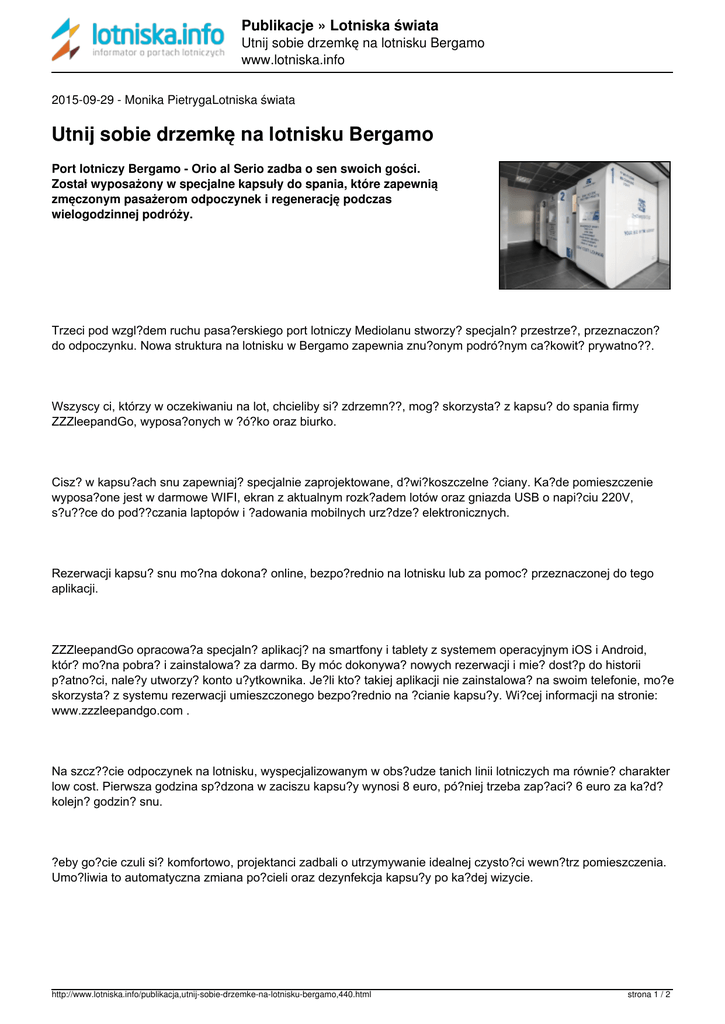 Utnij sobie drzemkę na lotnisku Bergamo - Publikacje